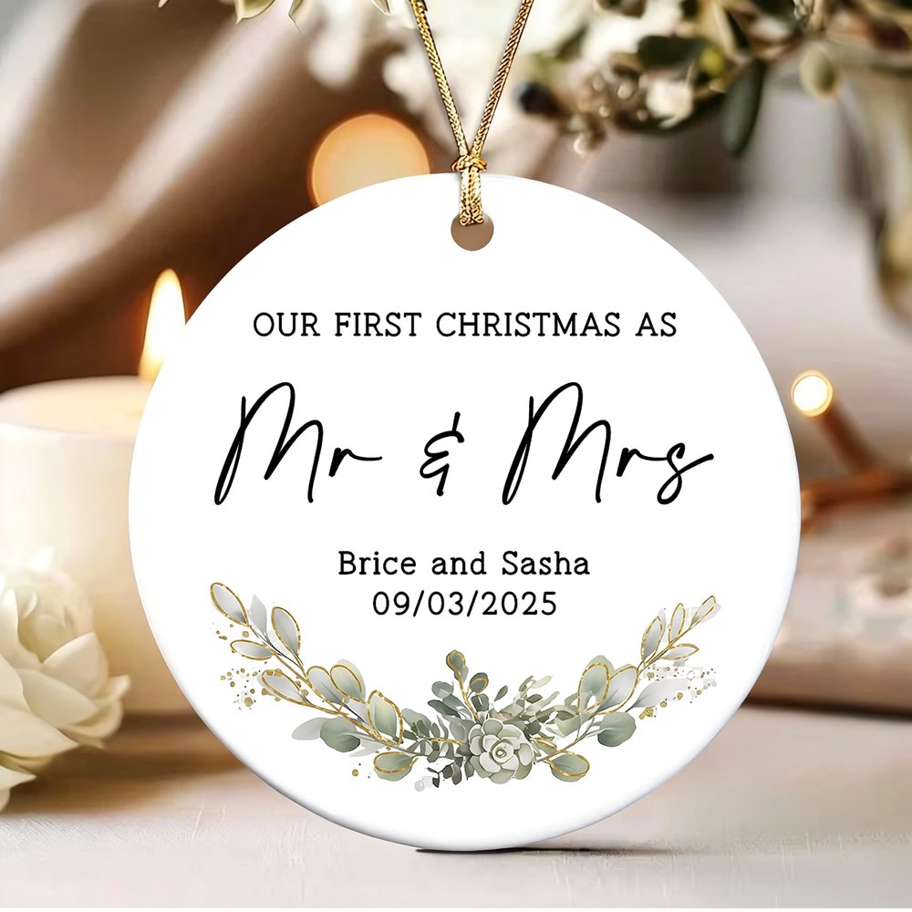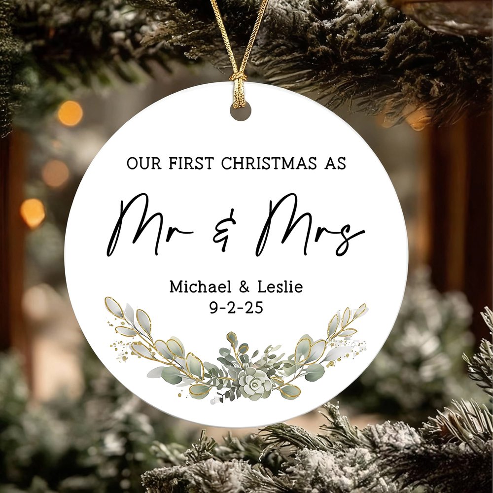 Progettato per il primo Natale di una coppia di sposi, questo ornamento commemorativo combina perfettamente eleganti motivi floreali con elementi festivi per creare una decorazione piena di amore e calore. Può essere personalizzato con una foto del matrimonio, i nomi della coppia e la data delle nozze, per immortalare per sempre il prezioso momento del "nostro primo Natale" in uno squisito ornamento.