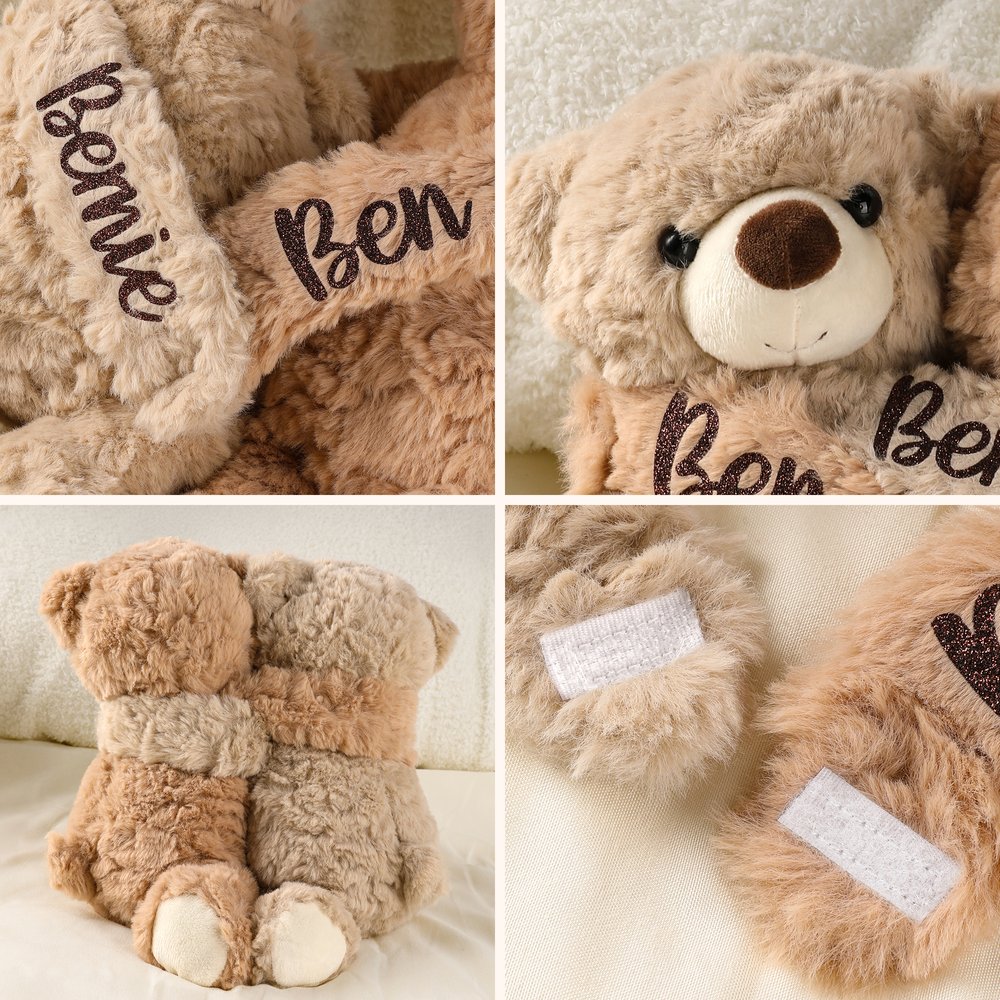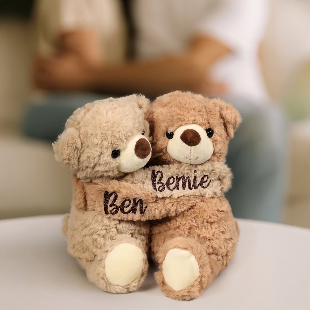 Composto da due adorabili orsetti o cuccioli che si abbracciano, simboleggia l'intimo legame tra persone care e cattura il vero significato di amicizia, famiglia o amore. Il braccio di ogni giocattolo può essere personalizzato con un nome, rendendolo un ricordo unico.