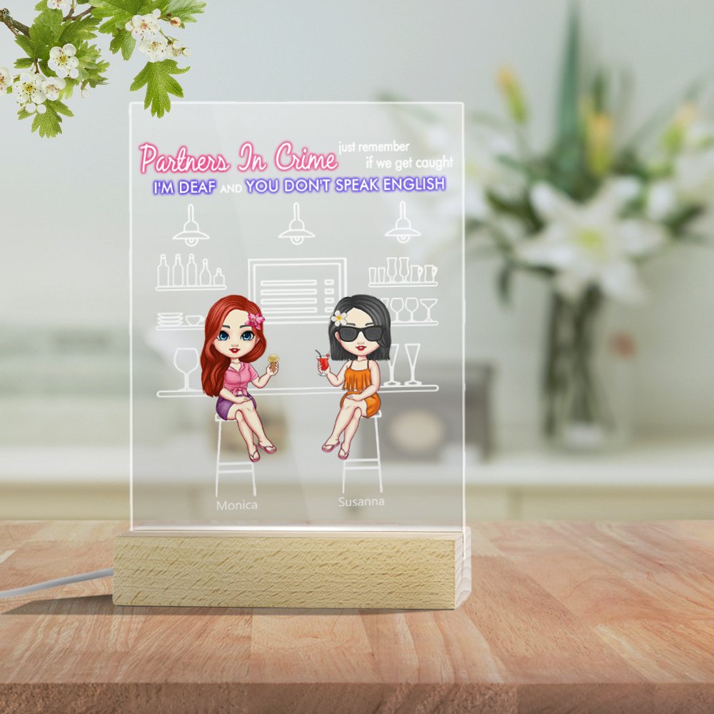 La targa in acrilico con luce notturna LED personalizzata a tema besties è un regalo perfetto per celebrare il legame unico tra le migliori amiche. Con la possibilità di personalizzare i nomi e i personaggi di voi e delle vostre amiche, questa targa diventa un caro ricordo, che cattura i bei momenti trascorsi con la vostra migliore amica.