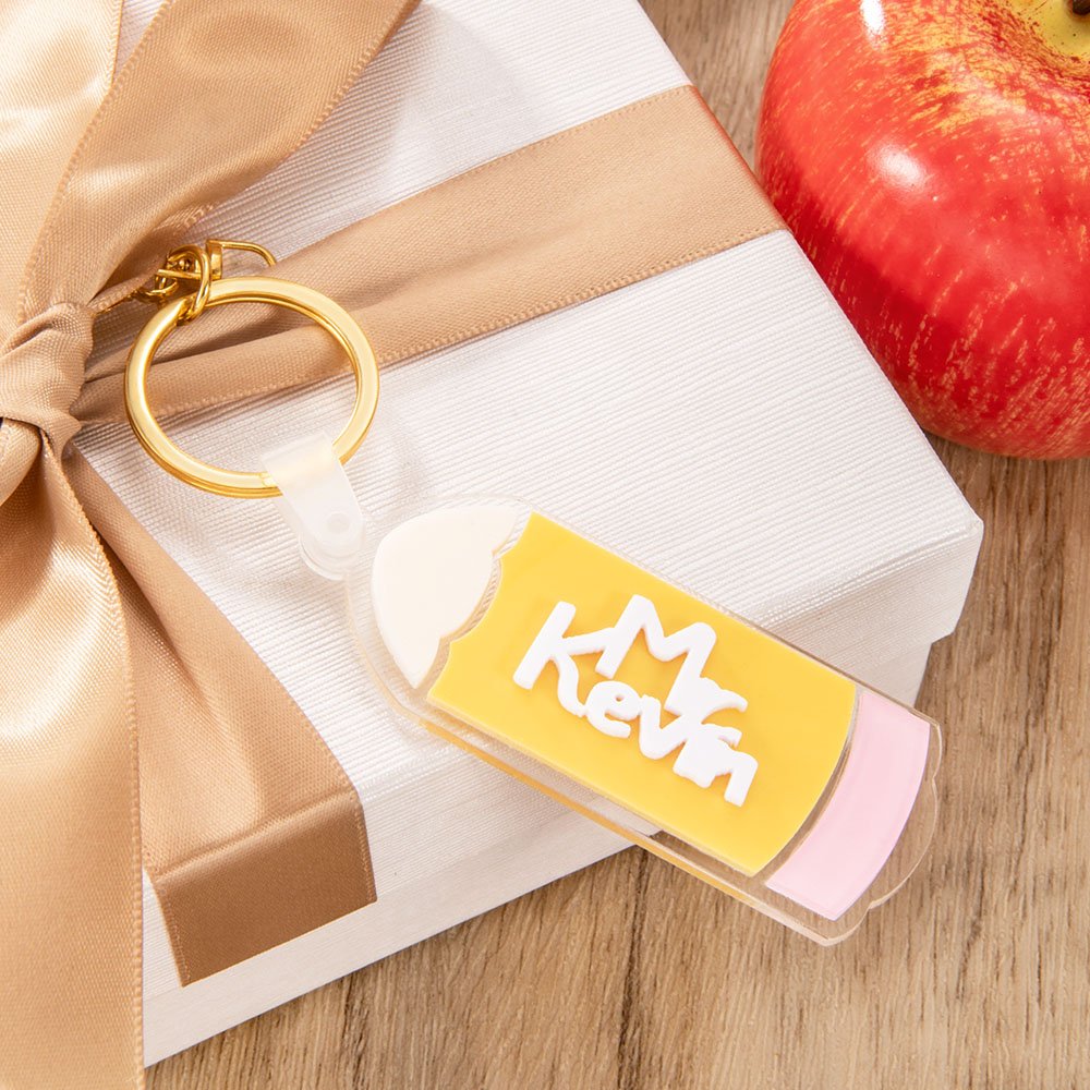 Matita personalizzata Portachiavi a doppio strato in acrilico con nome Compleanno Regalo di laurea per l'insegnante