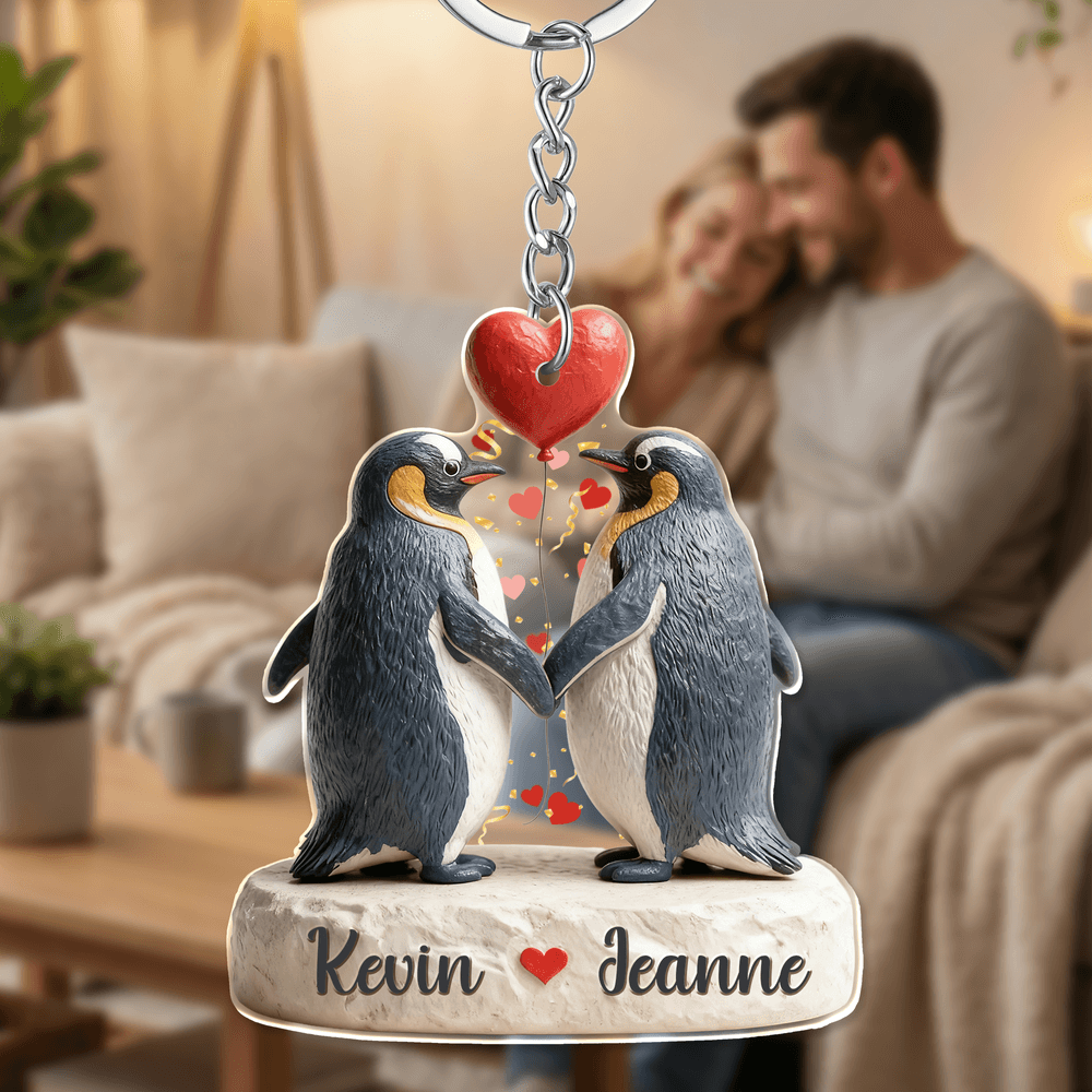 I pinguini sono noti per la loro fedeltà e devozione e spesso scelgono un compagno per tutta la vita. Con due pinguini affiancati che si tengono per mano, questo disegno simboleggia un impegno duraturo e cattura il vero amore, la protezione e la compagnia in un dolce ricordo quotidiano. Aggiungete i vostri nomi per trasformare questo simpatico accessorio in qualcosa di veramente significativo e unico nel suo genere.