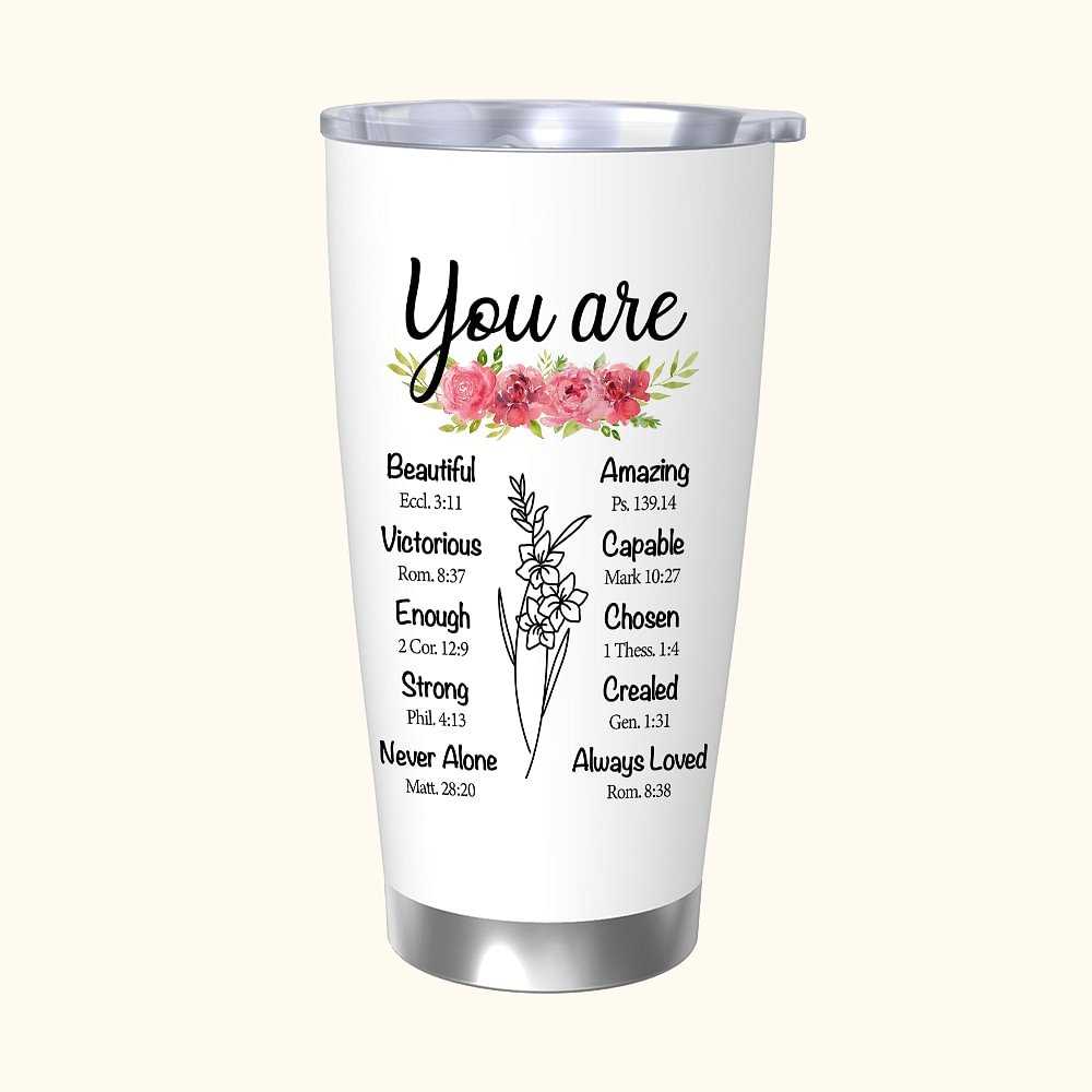 Ogni tumbler è corredato da versetti della Bibbia che parlano di amore, forza o incoraggiamento. Questo aggiunge un elemento spirituale al regalo, fornendo ispirazione e conforto. È un richiamo alla fede e una fonte di incoraggiamento per chi lo riceve.