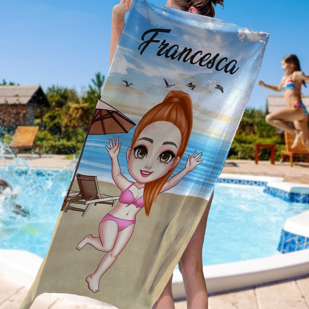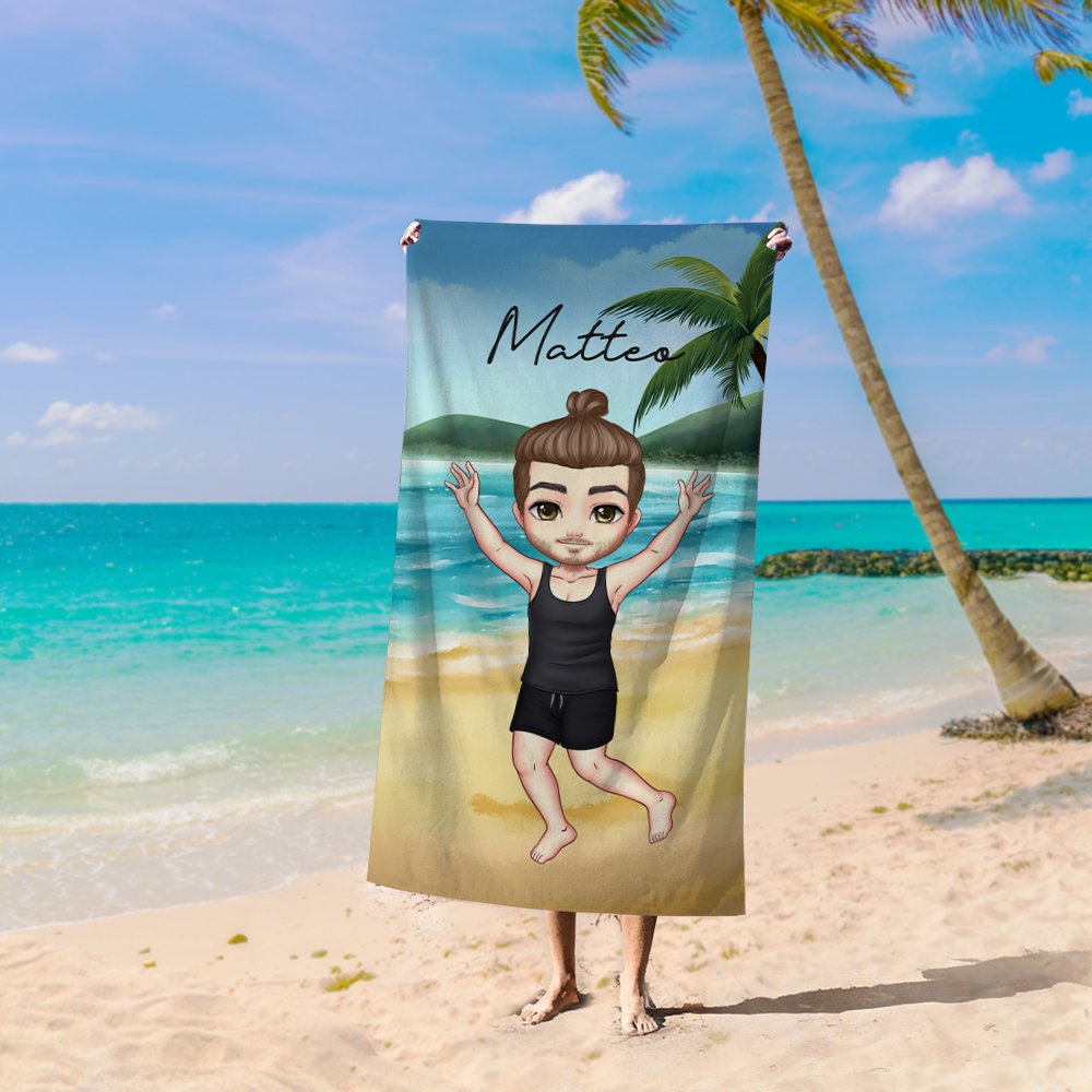 Il nostro asciugamano da spiaggia unisce uno stile unico a una personalizzazione creativa. Puoi personalizzare un personaggio in stile cartone animato (che sia una mamma o un bambino) e aggiungere un nome, creando un accessorio visivamente irresistibile che attirerà tutti gli sguardi.