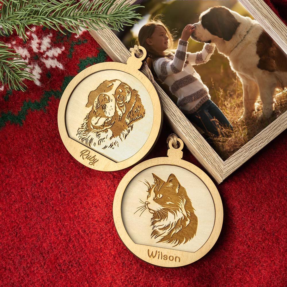 Questo ornamento si distingue per il suo design unico. Ogni ornamento presenta un design circolare con immagini vivide di cani e gatti rispettivamente, che catturano perfettamente l'amore degli amanti degli animali domestici per i loro figli pelosi. L'ornamento può anche essere personalizzato con il nome dell'animale domestico, rendendo ogni ornamento un pezzo d'arte unico.