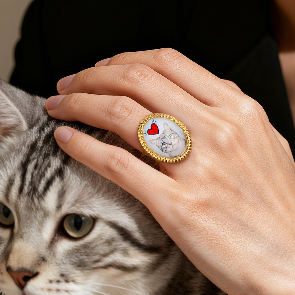 Regalo perfetto per gli amanti degli animali domestici, questo anello con ritratto personalizzato è il modo ideale per celebrare un legame speciale. Che sia per un compleanno, per Natale o come ricordo sentito, esprime amore e affetto. Sorprendete gli altri appassionati di animali o regalate a voi stessi un pezzo unico che cattura l'essenza del vostro amato compagno.