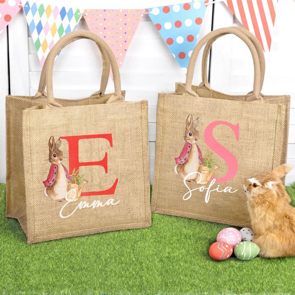 Abbastanza spaziosa da contenere tutte le sorprese raccolte durante la caccia alle uova di Pasqua, questa borsa è il cestino ideale per l'occasione. Il robusto materiale di juta assicura una lunga durata, mentre i comodi manici rendono facile ai bambini trasportare i loro tesori, rendendola un accessorio da usare anno dopo anno.