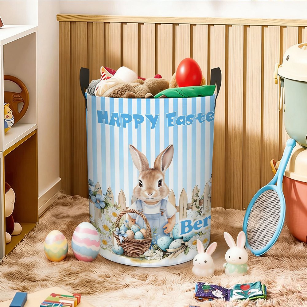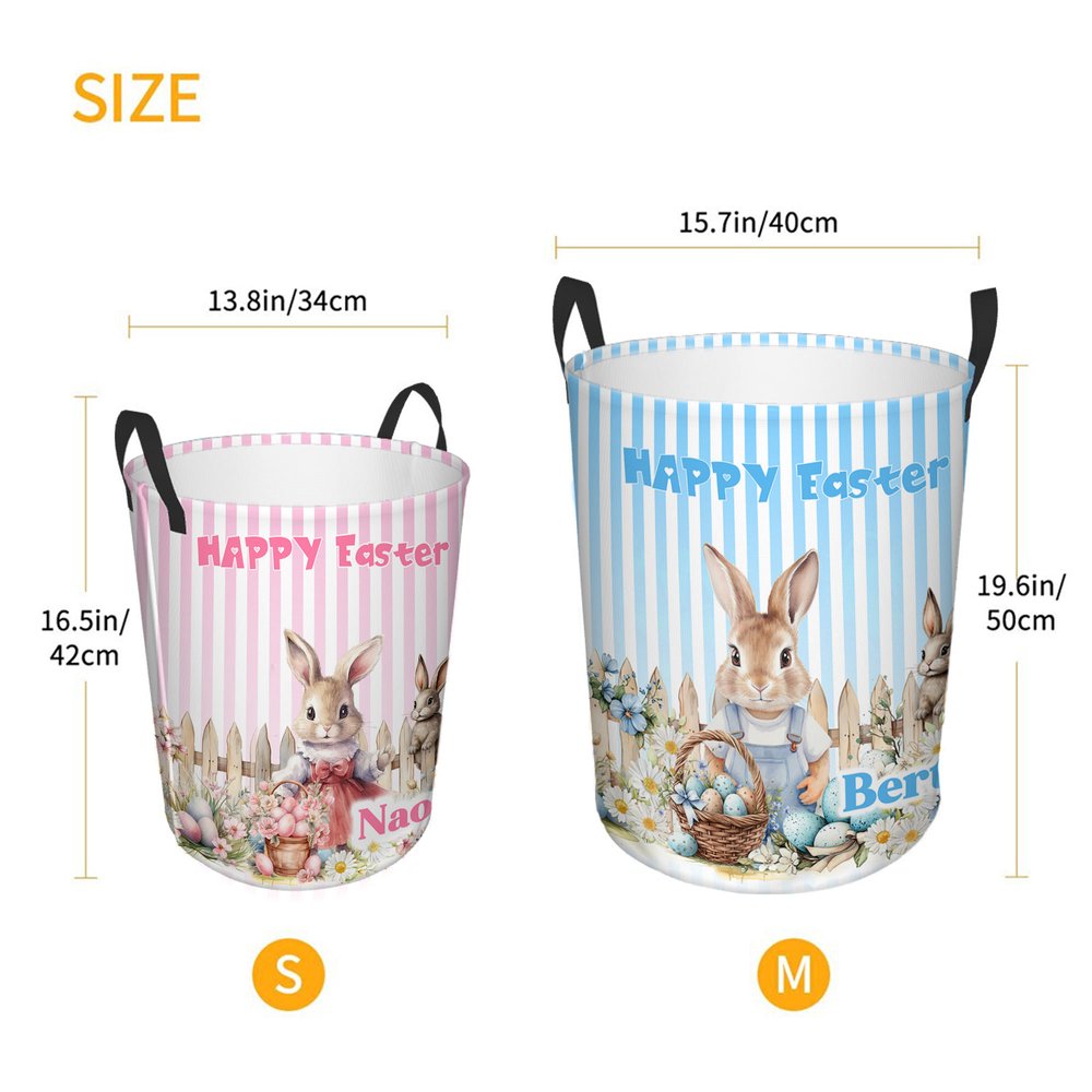 Il cestino portaoggetti è caratterizzato dal classico tema di Peter Rabbit, ornato da vivaci aggiunte di nomi personalizzati, che fondono l'estetica infantile con un senso di esclusività. La sua struttura a bocca larga e ad alta capacità, abbinata a comode doppie maniglie, non solo soddisfa le esigenze pratiche, ma aggiunge anche un tocco di adorabile atmosfera pasquale.