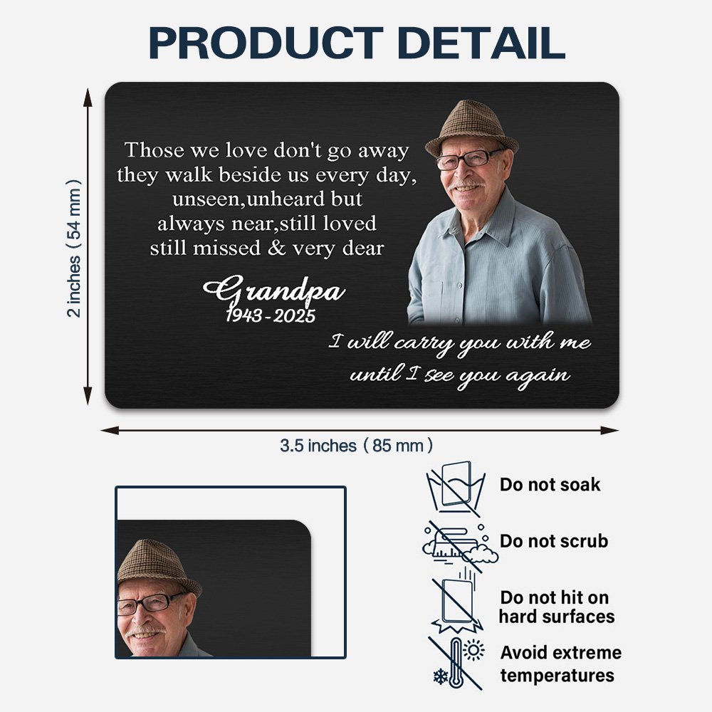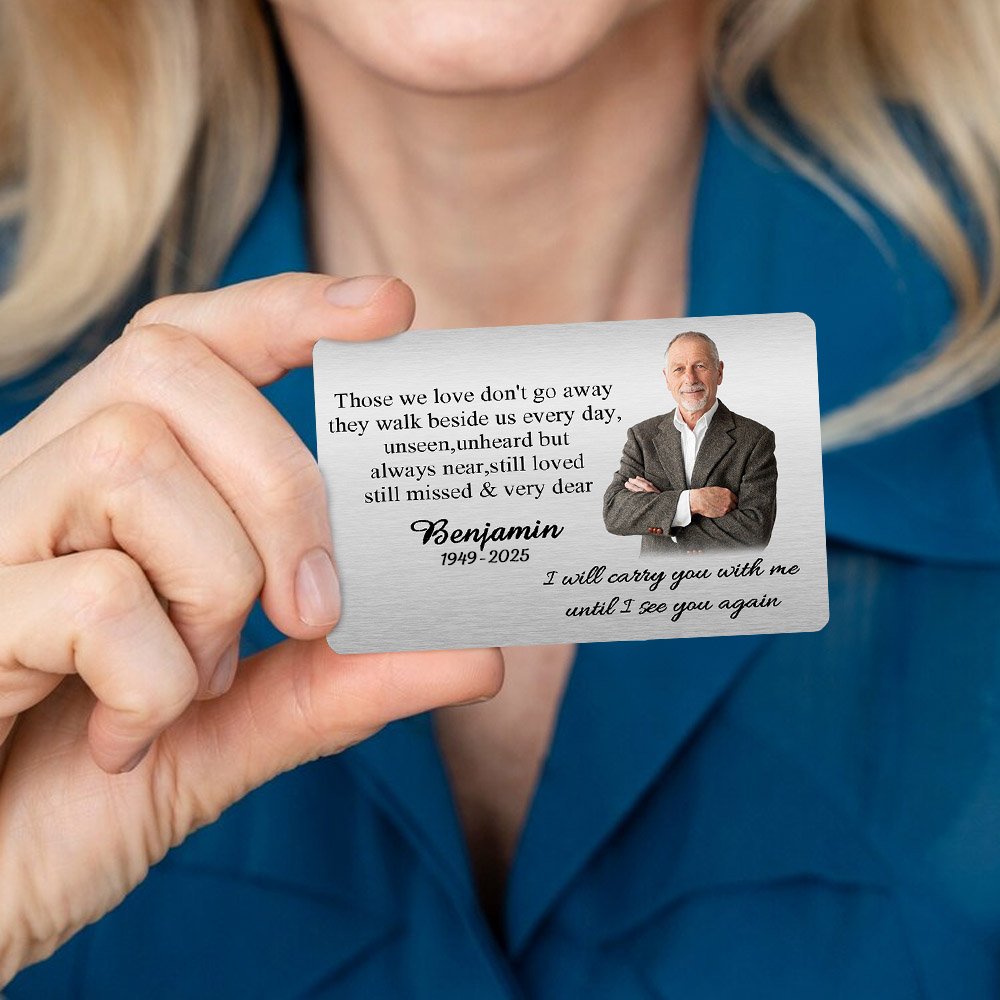 Questo biglietto da visita personalizzato è una commemorazione affettuosa di una persona cara o di un amico scomparso. Forniamo servizi di personalizzazione che consentono di inserire un nome, una data e una foto, in modo che ogni volta che la si sfoglia e la si tocca, si rivivano i bei momenti trascorsi con loro. Che sia un regalo per le feste o un pensiero quotidiano, è una scelta eccellente per trasmettere amore e pensieri. La parola "Quelli che amiamo non se ne vanno. Camminano accanto a noi ogni giorno..." è stampata su questo biglietto.
