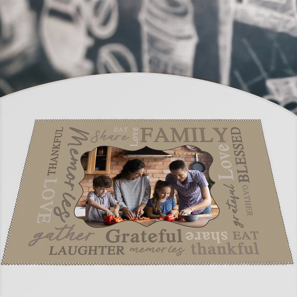 Caratterizzate da foto personalizzate come elemento centrale del design, queste tovagliette mostrano momenti cari come ritratti di famiglia e istantanee di tutti i giorni. Lo stile complessivo emana calore ed esclusività. I vivaci motivi fotografici catturano fedelmente i ricordi preziosi, completati da uno sfondo minimalista. In questo modo la tovaglietta si trasforma da semplice accessorio per la tavola in uno scaldavivande per i ricordi di famiglia, evocando la gioia di stare insieme a ogni pasto.