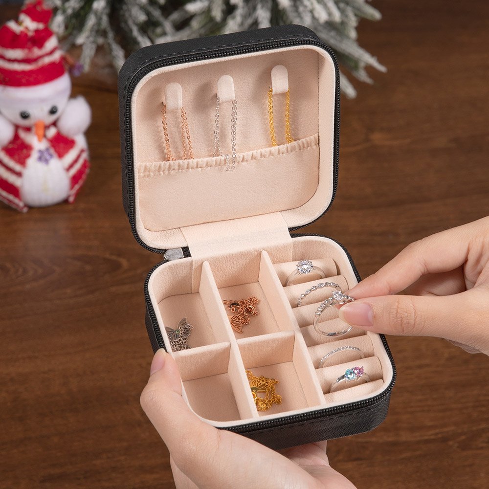 I nostri portagioie sono piccoli e leggeri, perfetti per i viaggi. Che siate in viaggio o in ufficio, questo astuccio può essere facilmente inserito in qualsiasi borsa o valigia.