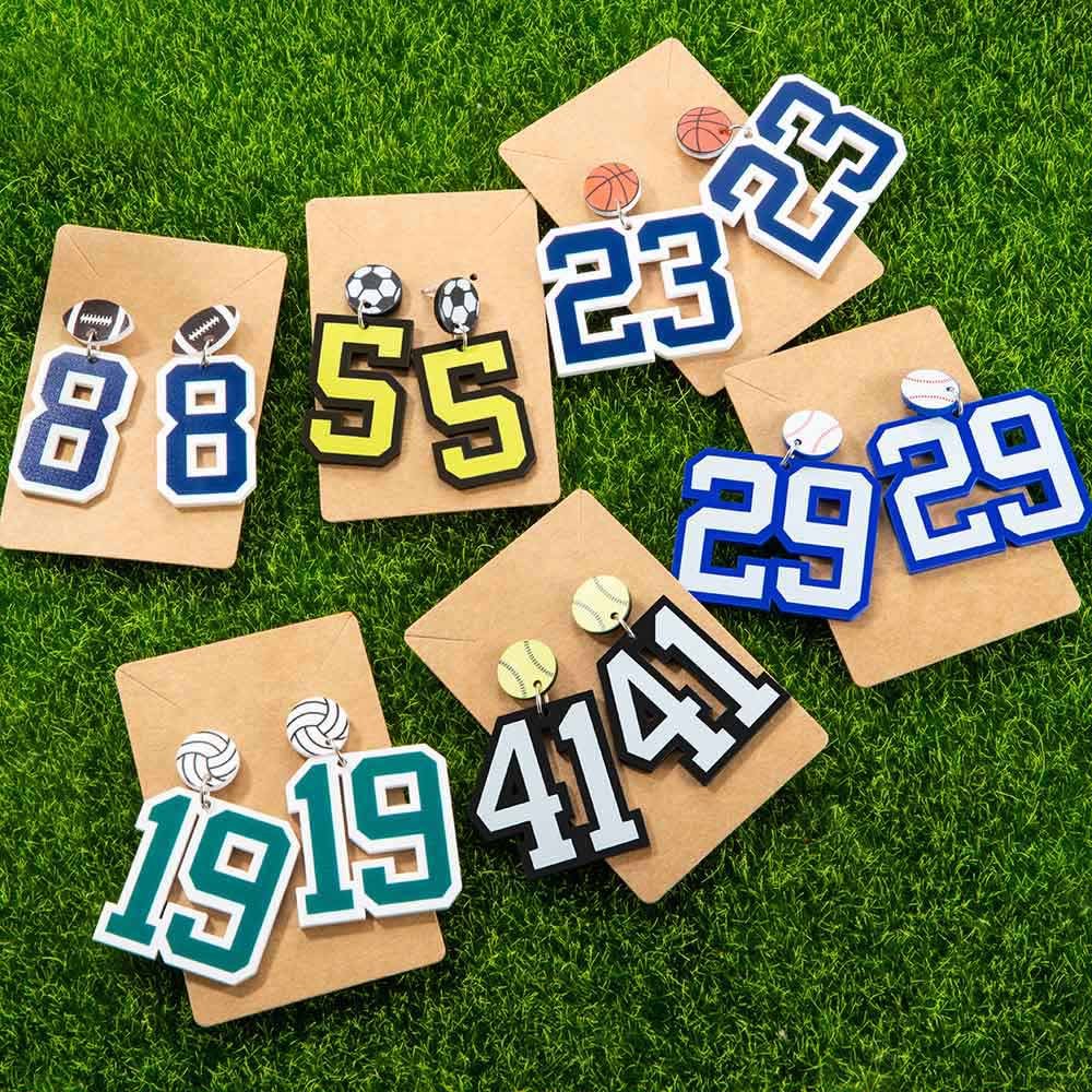I nostri orecchini con numeri sono il modo perfetto per mostrare il vostro spirito di squadra! Stile ispirato allo sport. È il vostro modo di vantarvi del vostro atleta numero uno.