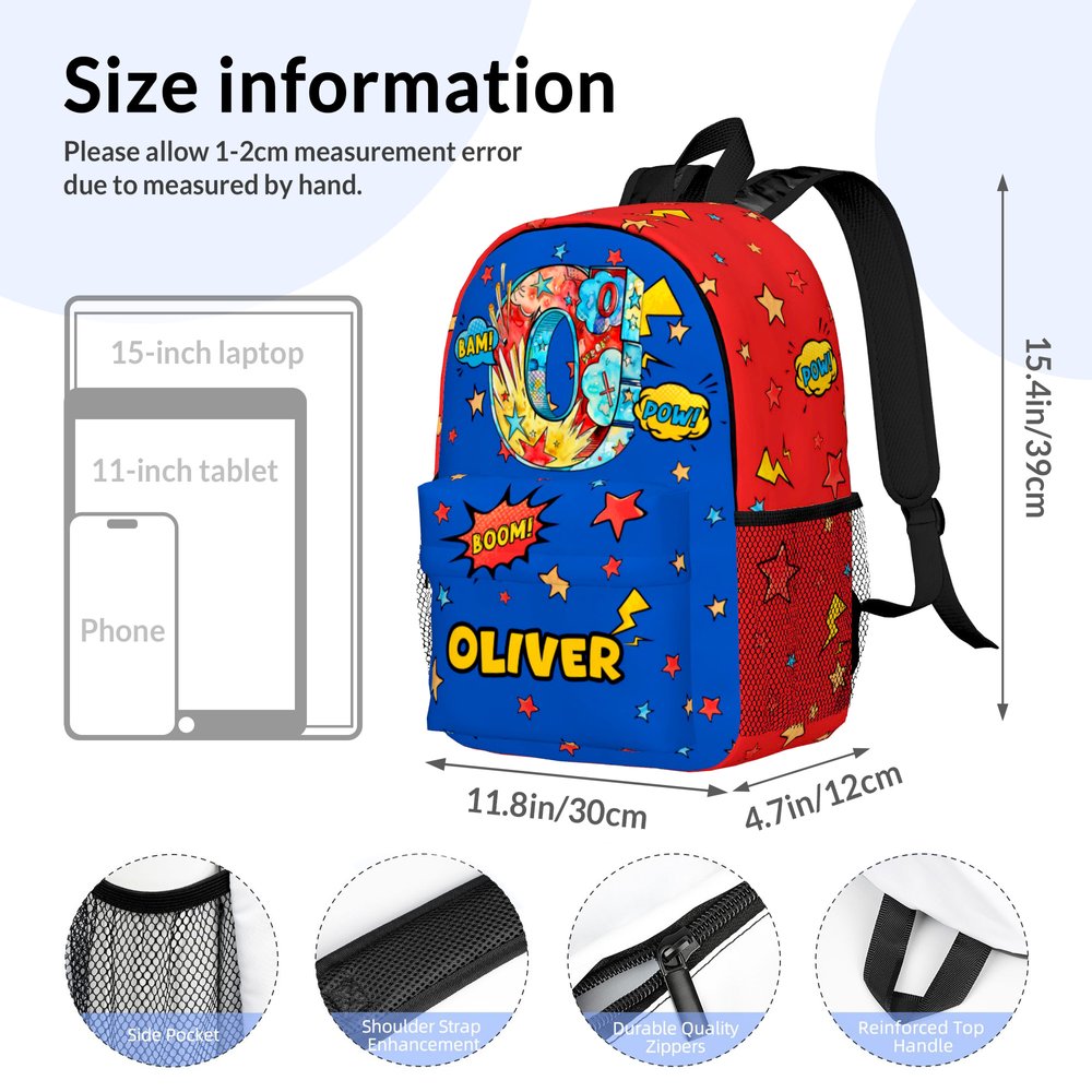 Caratterizzato da un design luminoso in stile cartoon con elementi divertenti come stelle e cornici esplosive, questo zaino offre una vivace personalizzazione delle iniziali e del nome personalizzato, oltre a 14 combinazioni di colori tra cui scegliere. Permette ai bambini di esprimere la loro personalità unica e di distinguersi facilmente a scuola.