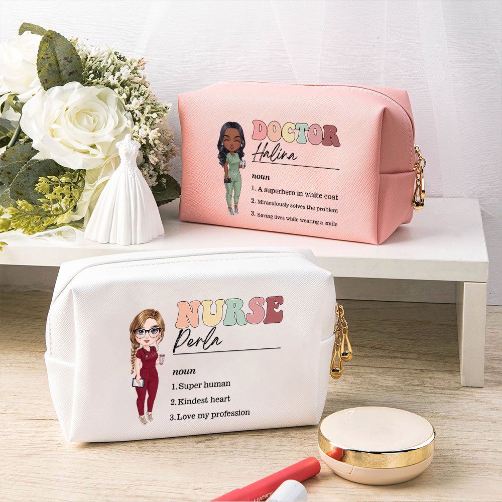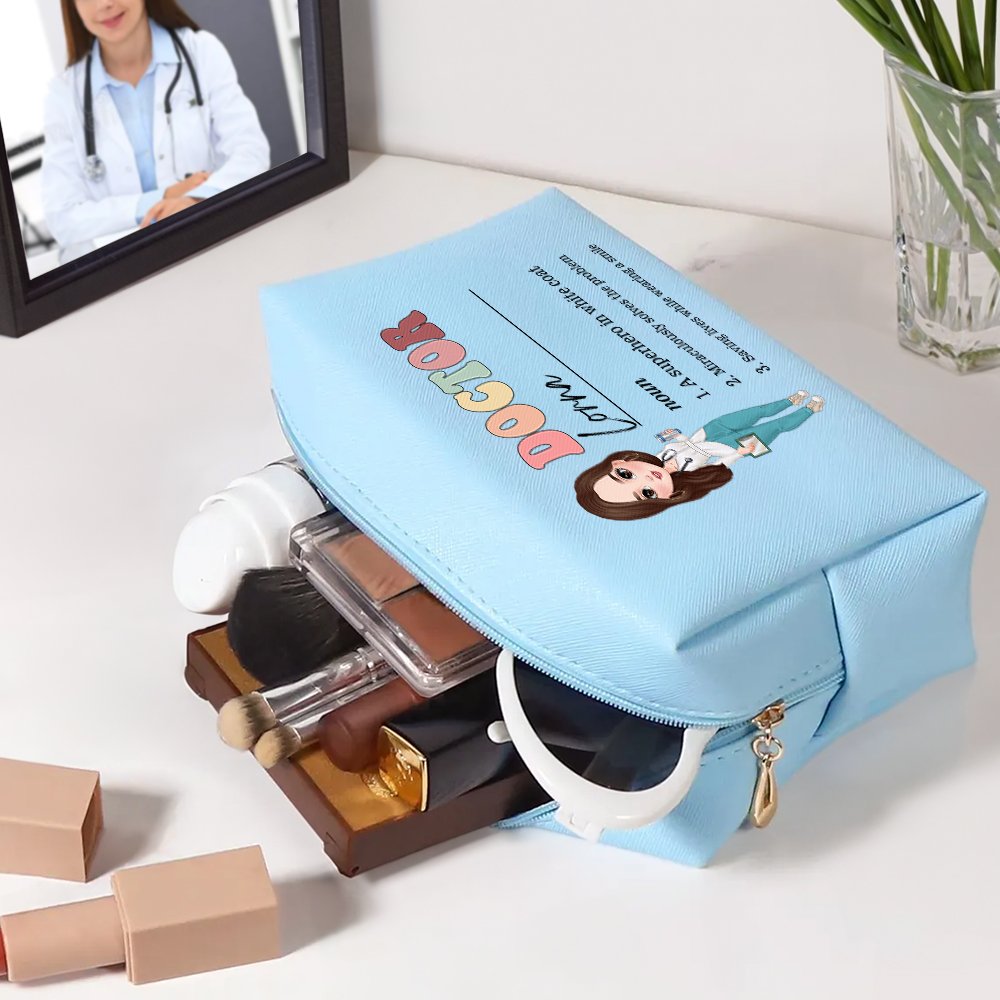 Questa grande borsa per il trucco presenta un adorabile personaggio dei cartoni animati personalizzato. Il suo design unico e accattivante consente al personale medico di esprimere con orgoglio la propria professione e di aggiungere un tocco di fascino alla propria dotazione quotidiana.