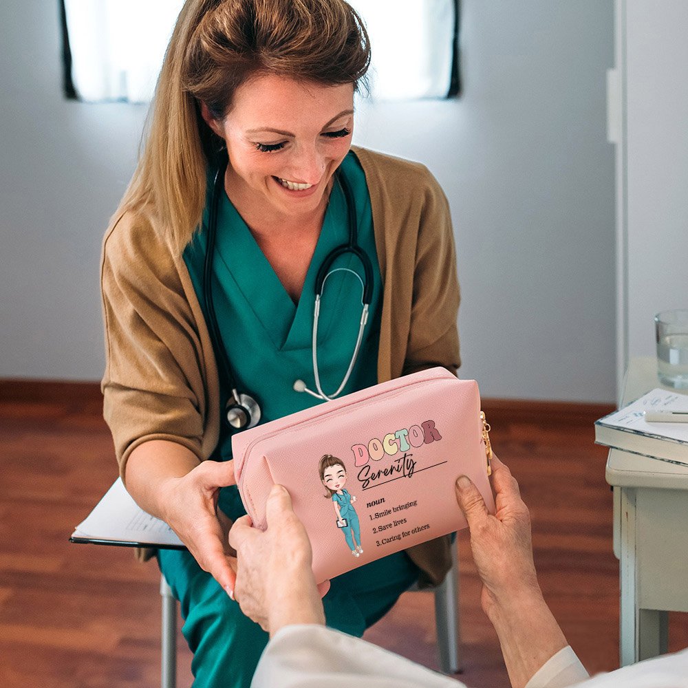 Perfettamente adatta a medici, infermieri, operatori sanitari, operatori sanitari e studenti, questa borsa da trucco tote è un regalo premuroso che riconosce il loro duro lavoro e la loro dedizione. Che si tratti di un compleanno, della festa del dottore, della festa dell'infermiera o di un gesto di apprezzamento, questa tote bag è un regalo delizioso.