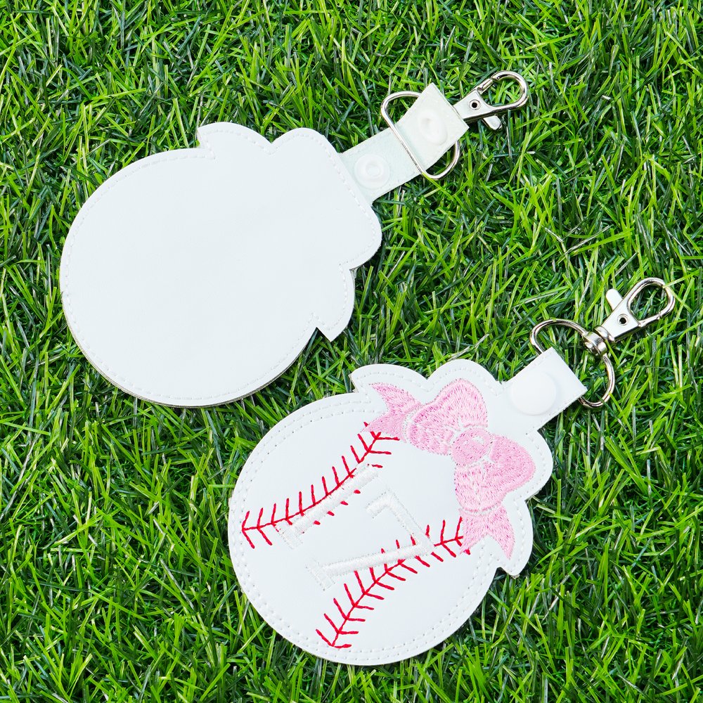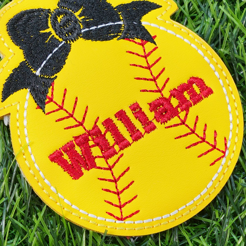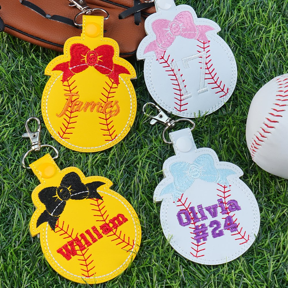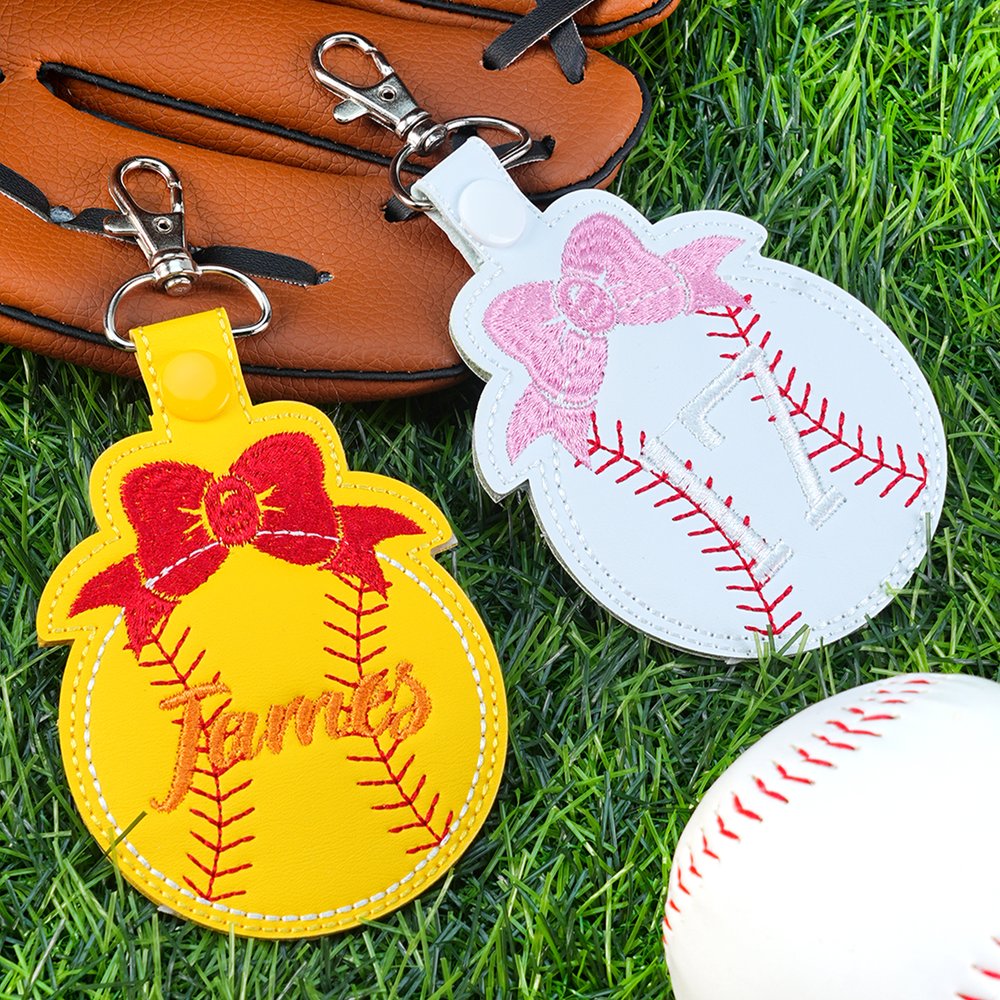 Ispirato alle forme iconiche del softball e del baseball, questo portachiavi combina lo stile sportivo con un fiocco delicatamente ricamato per un tocco di eleganza. Personalizzatelo con un nome, un numero, un carattere e un colore del filo per creare un accessorio unico che sia veramente vostro.