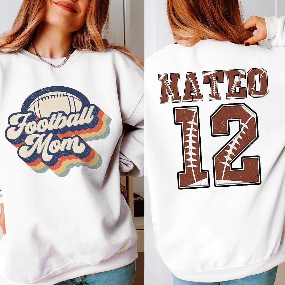 Questa T-shirt e questa felpa retrò presentano il logo della mamma calciatrice sul davanti. Aggiungete il nome e il numero del vostro bambino per trasformarla in un abbigliamento sportivo unico e personalizzato. Quando sudano in campo, le mamme che indossano questo abbigliamento danno loro più determinazione per andare avanti.