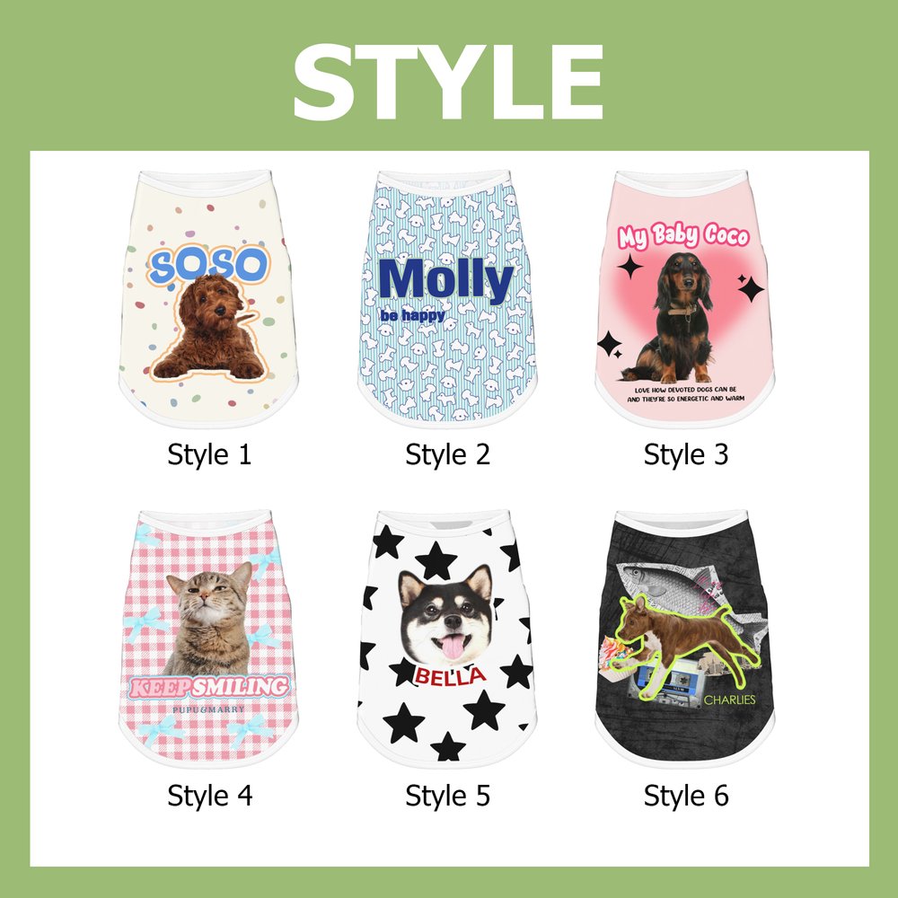 Caratterizzato da elementi a stella e adorabili motivi retrò come stile di design principale, ogni gilet è personalizzato in modo unico con la foto e il nome del vostro animale domestico. Scegliendo tra sei raffinati stili, sia che si tratti di giocosi accenti a stella o di classici motivi rétro, ogni design mette in risalto la personalità e il fascino del vostro animale domestico. Quando viene indossato, spicca tra la folla e serve come espressione diretta del vostro amore per il senso della moda del vostro animale.
