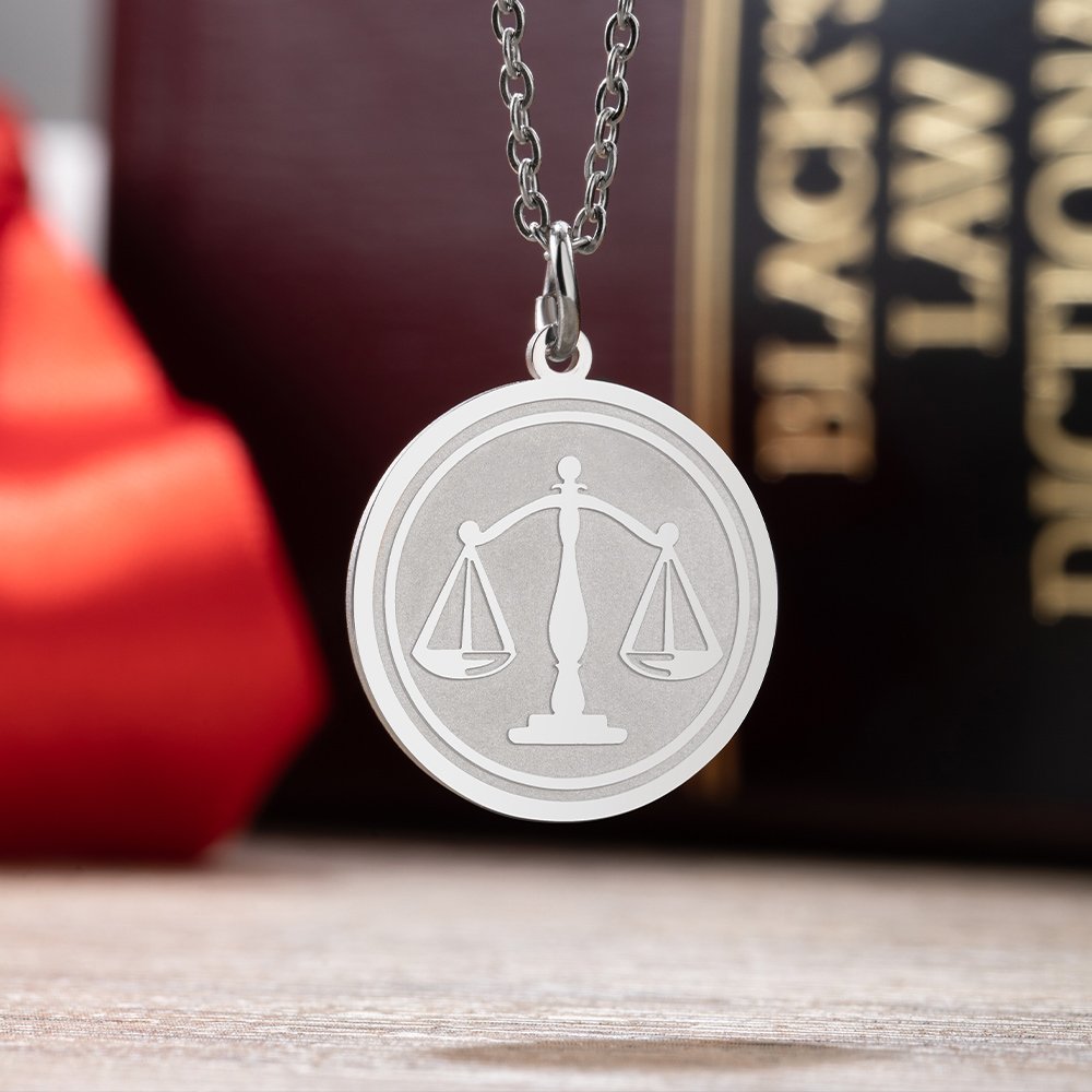 Per questa collana, è possibile incidere il proprio nome sul retro del ciondolo per personalizzare una collana unica nel suo genere, un'ottima idea regalo per avvocati, studenti di legge o qualsiasi nuovo professionista legale.