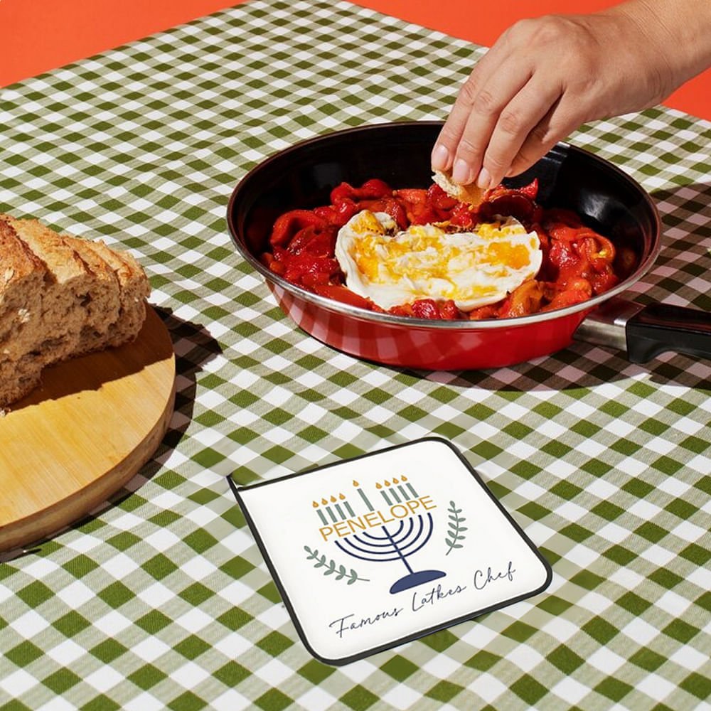 Regalando questa presina ai vostri amici o alla vostra famiglia in occasione di Hanukkah, dimostrate il vostro sostegno allo chef della famiglia che cucina la cena della festa.