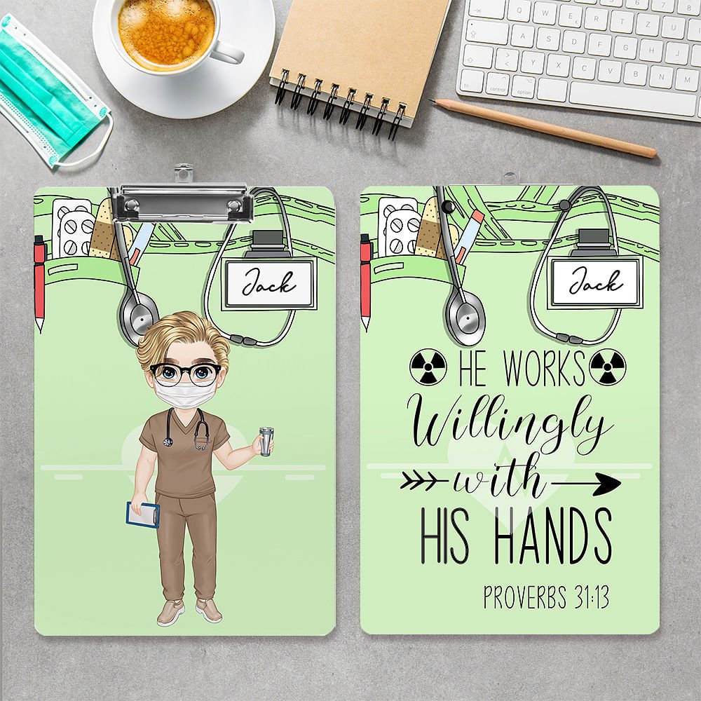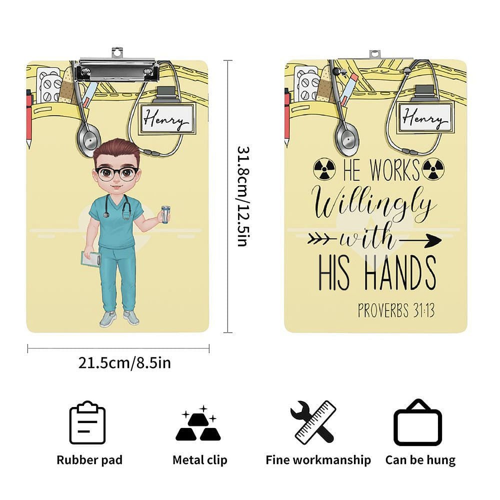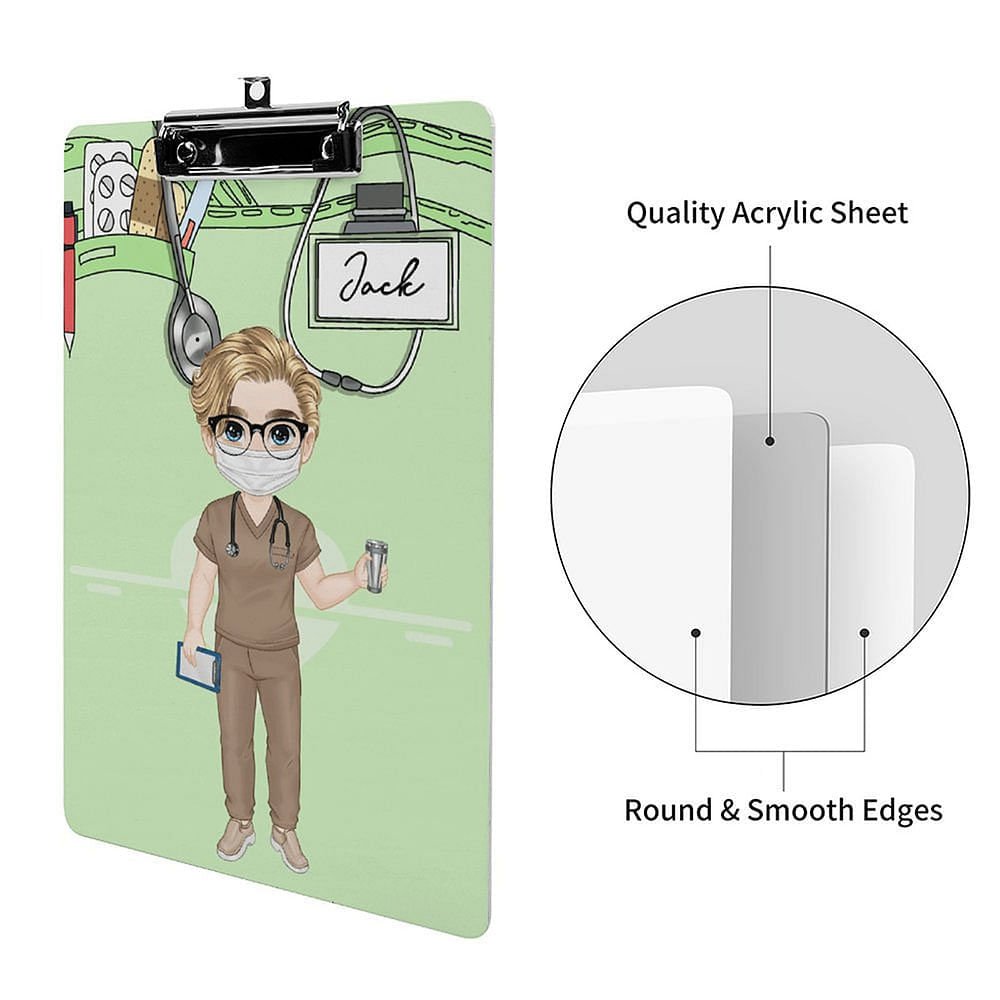 La nostra cartellina è double-face e personalizzabile. È possibile abbinare liberamente l'immagine del cartone animato del medico e aggiungere il nome per creare una cartellina unica ed esclusiva.