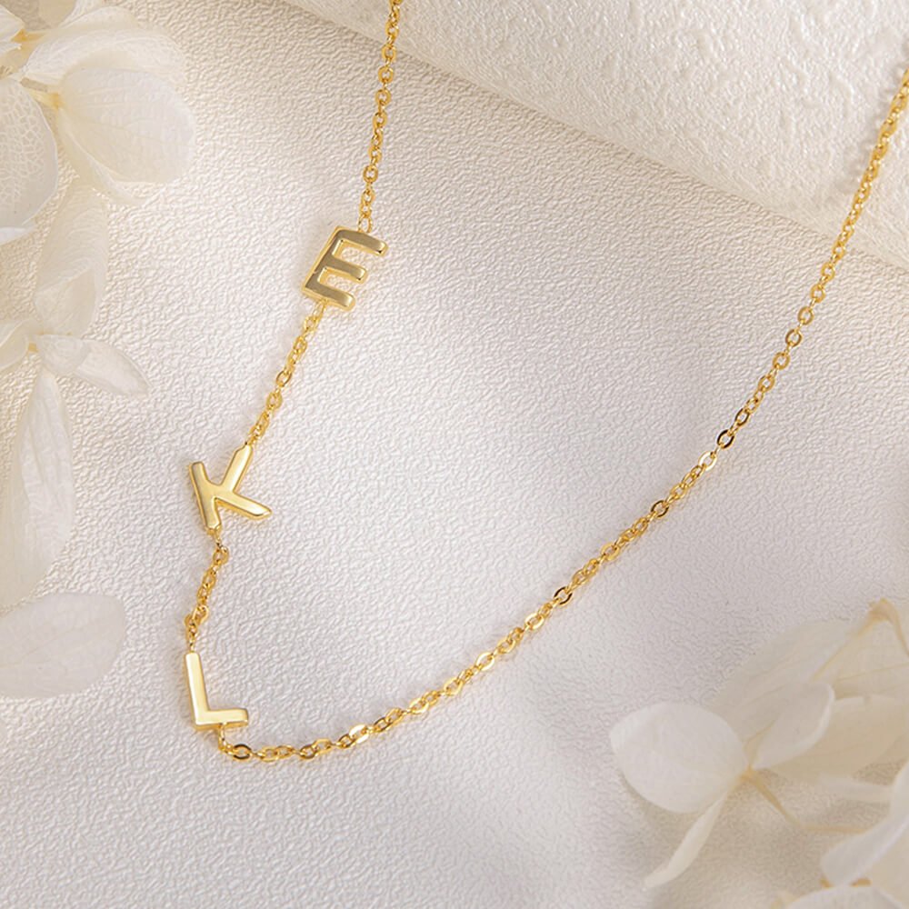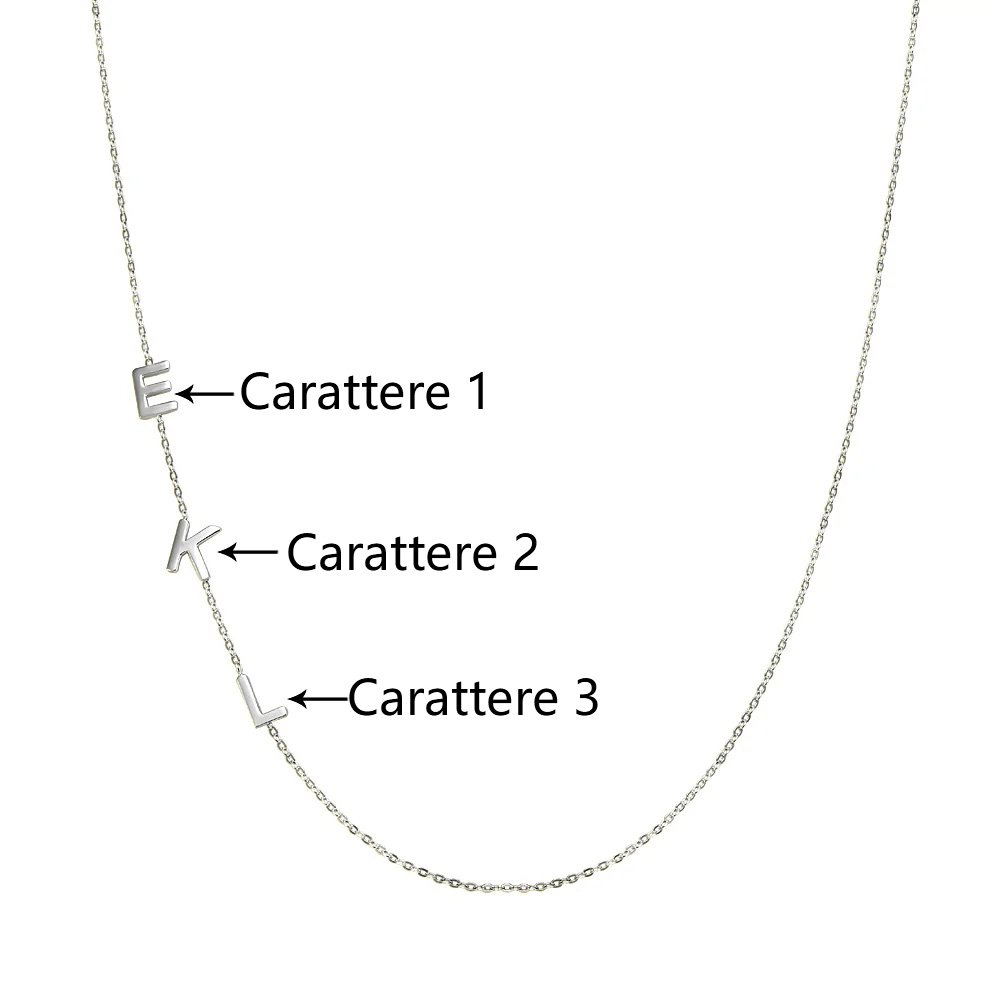 Questa collana di tendenza con scritta laterale è un must per gli amanti dei gioielli. Basta selezionare le lettere o i simboli del cuore che desiderate e noi ci occuperemo di personalizzarla per voi.