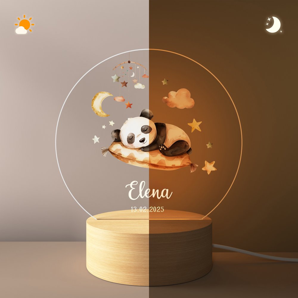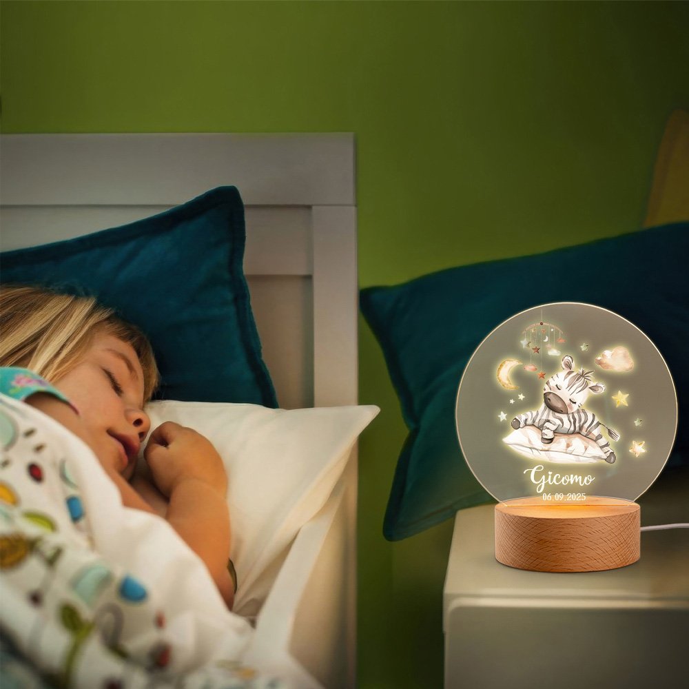 La nostra luce notturna raffigura un adorabile animale addormentato circondato da soffici nuvole, stelle scintillanti e una luna luminosa. Il cartone animato sereno e stravagante crea un'atmosfera da sogno e accompagna i vostri piccoli mentre si addormentano in un dolce sogno.