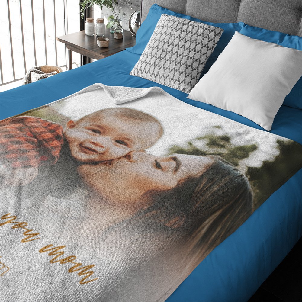 L'immagine e il testo della coperta possono essere personalizzati in base alle vostre preferenze, rendendola unica. Ad esempio, è possibile riempire la coperta di emozioni pubblicando le foto del bambino e della madre.