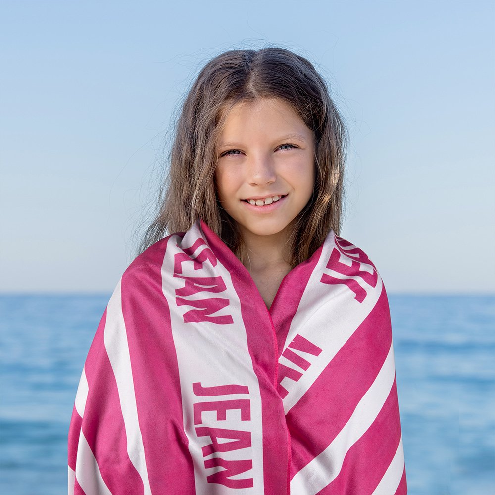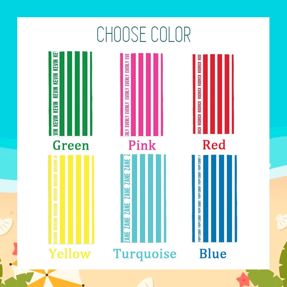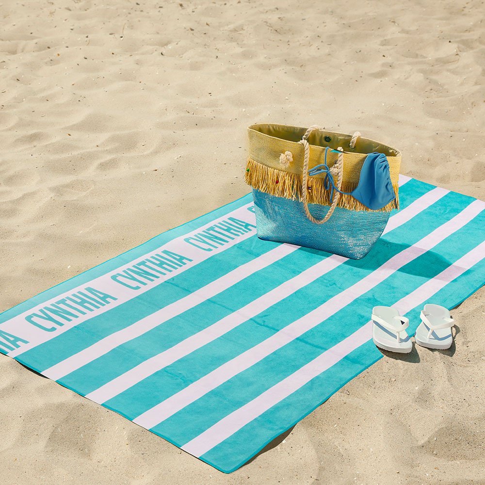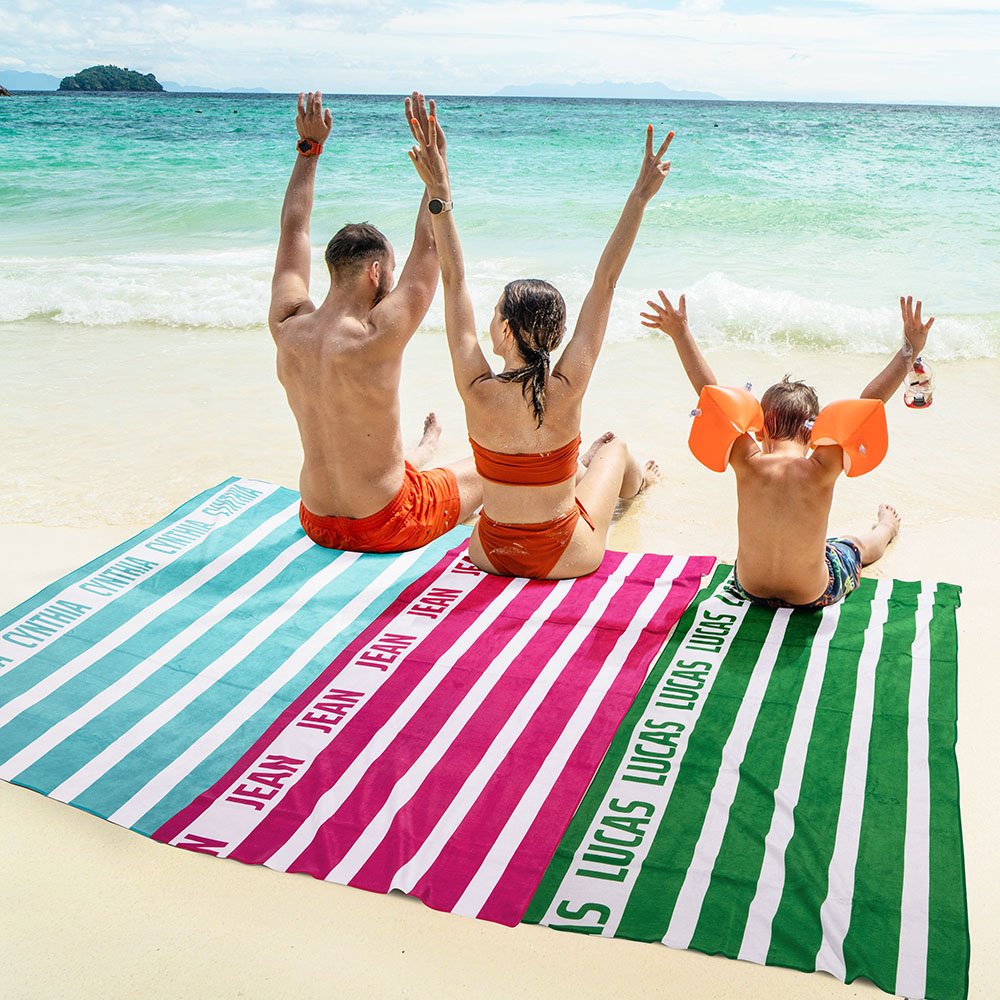 Potete personalizzare il vostro nome sul telo da mare e scegliere un colore da abbinare alle classiche strisce. I membri della famiglia o gli amici possono avvolgersi in stili unici e creare il loro classico look estivo.