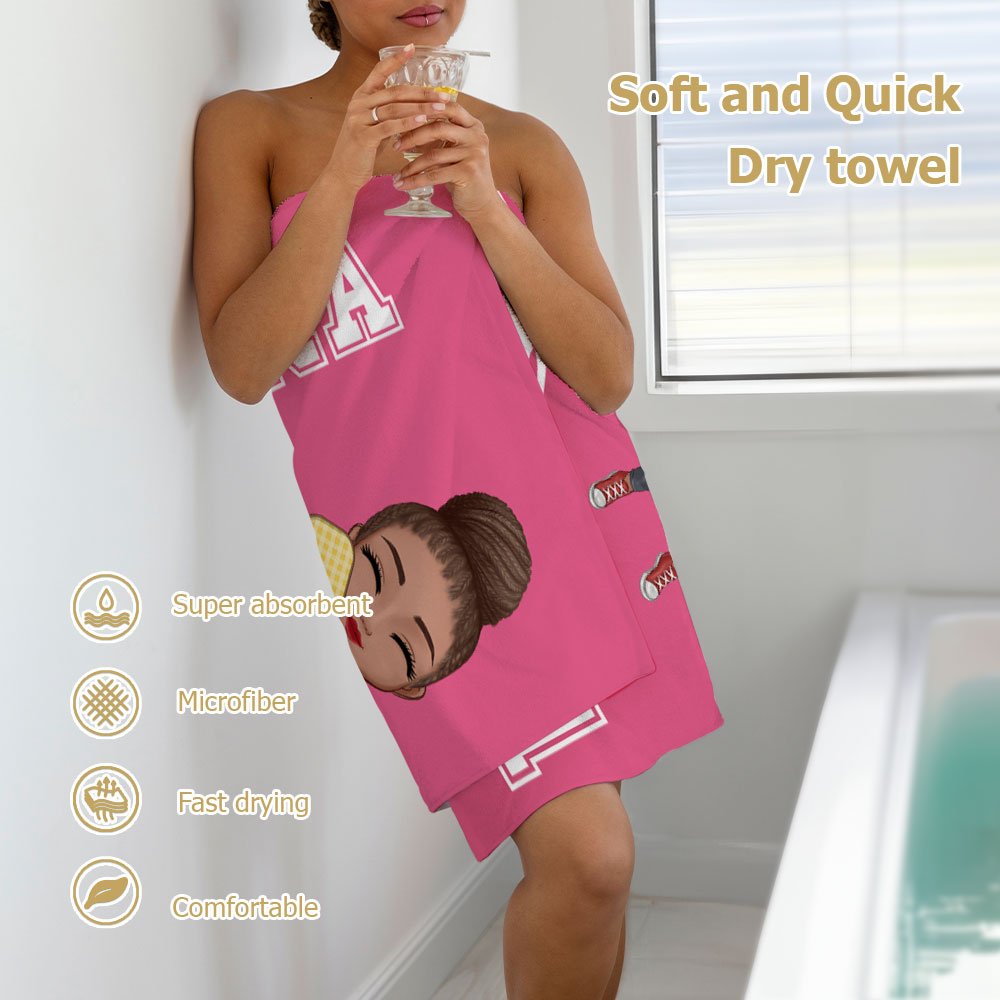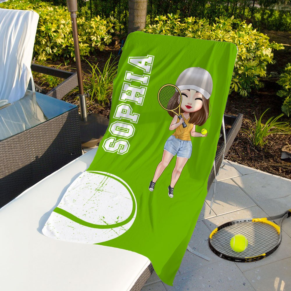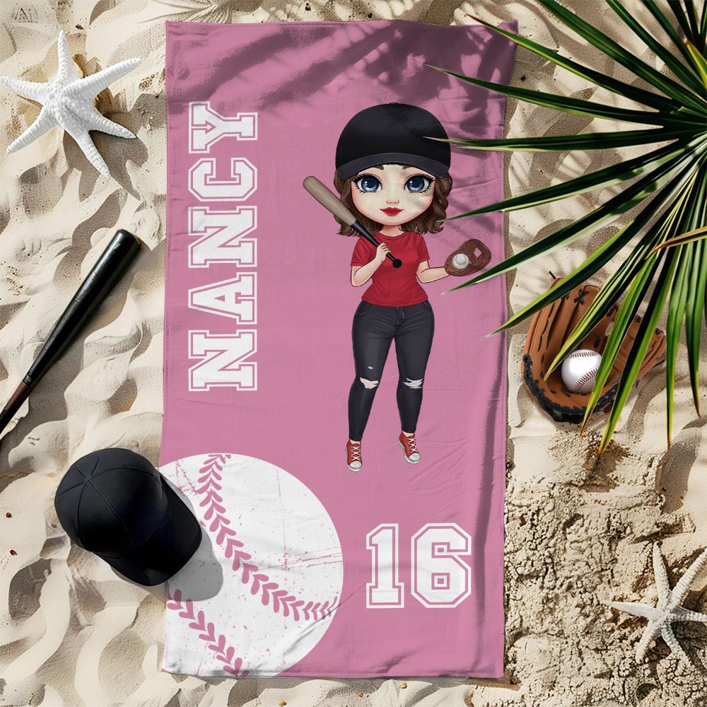 Questo telo da spiaggia presenta un divertente e vivace disegno di un personaggio femminile dei cartoni animati, personalizzato con un nome e un numero di giocatore. Scegliete tra sette emozionanti temi sportivi: baseball, softball, cricket, badminton, tennis, pickleball e tennis da tavolo. Grazie a questa varietà, è possibile adattare l'asciugamano al proprio sport preferito, il che lo rende un ottimo regalo per gli atleti e gli appassionati di sport.