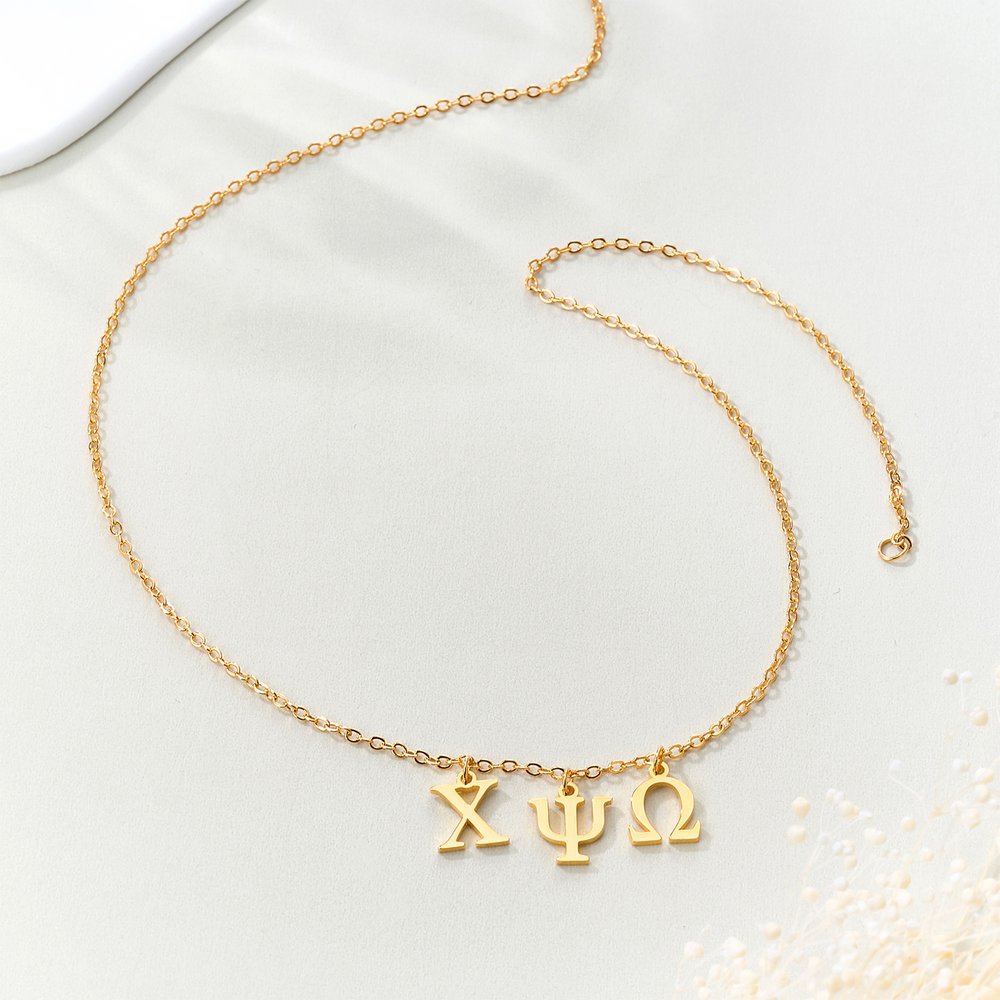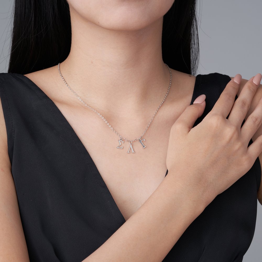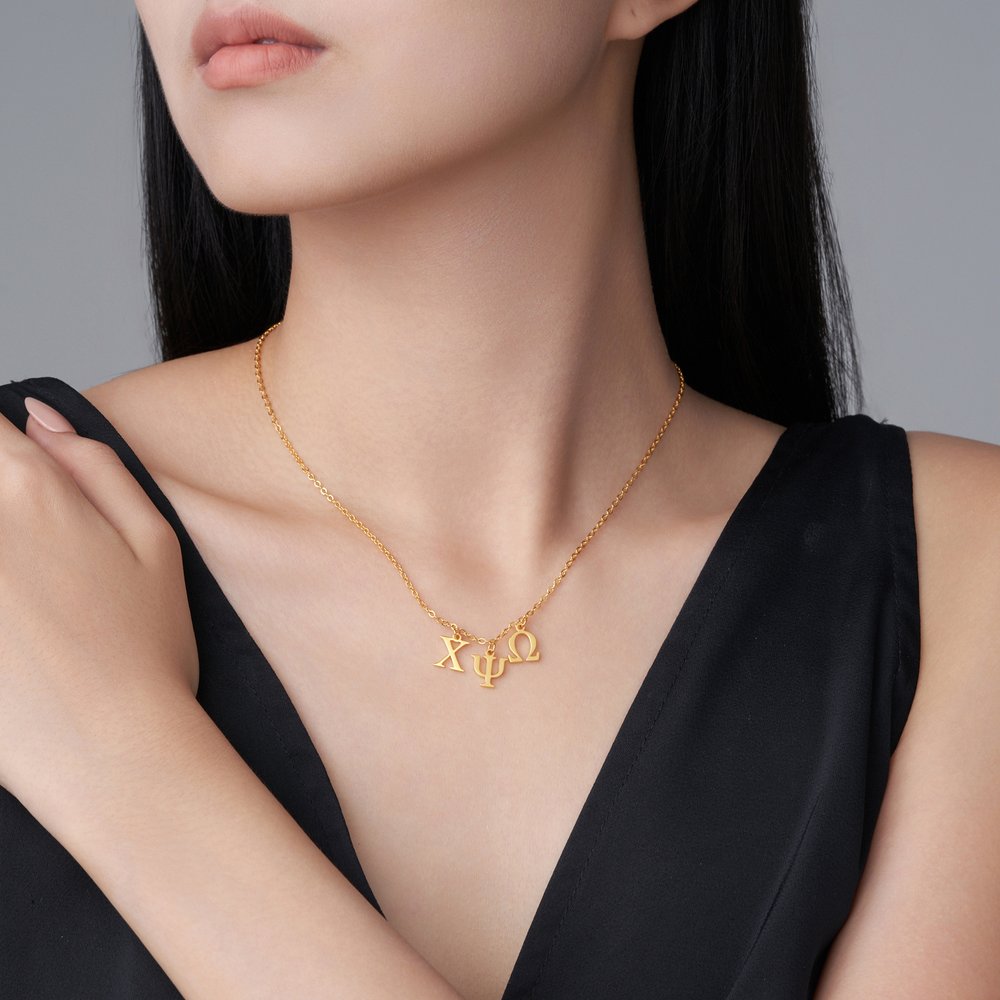 Questa collana presenta il disegno di una lettera greca, simbolo di appartenenza e unità, ideale per le confraternite e per i legami speciali tra amici. Può essere personalizzata con una o tre lettere greche in platino, oro o oro rosa. Il design semplice ed elegante è perfetto per i membri delle confraternite, che possono così mostrare lo stile unico della loro squadra.