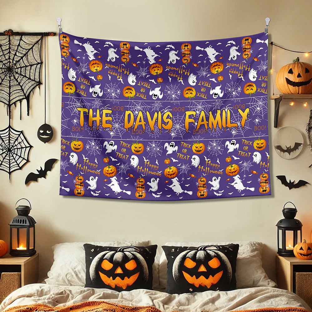 Accendete immediatamente l'atmosfera festiva e rendete la vostra casa il punto focale con questo accattivante motivo ad arazzo che incorpora elementi classici come lanterne di zucca, fantasmi, ragnatele, ecc. Che si tratti di una festa interna o di una decorazione esterna, può essere perfettamente integrato, aggiungendo un tocco di mistero e divertimento.