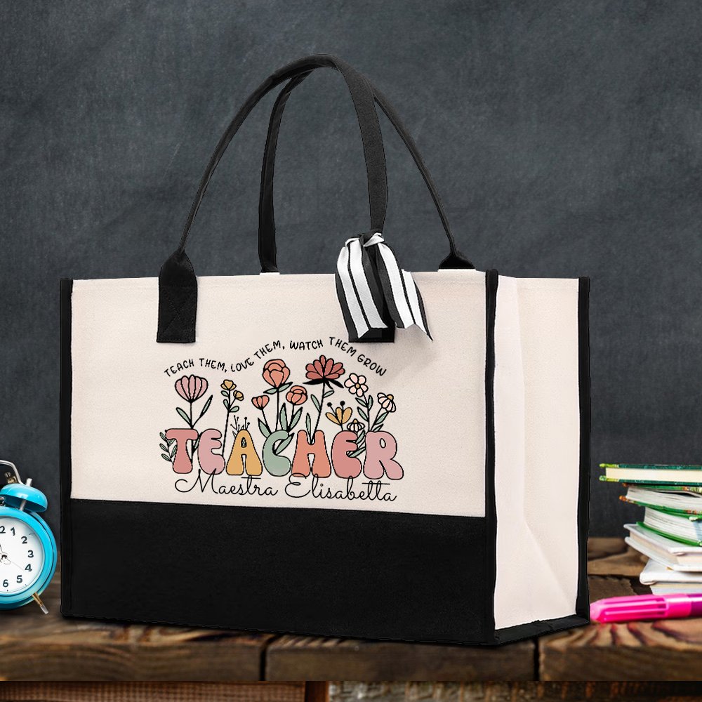 Questa borsa personalizzata è il regalo ideale per ringraziare un insegnante all'inizio o alla fine dell'anno scolastico. Un gesto significativo che riconosce il suo impegno e il duro lavoro.