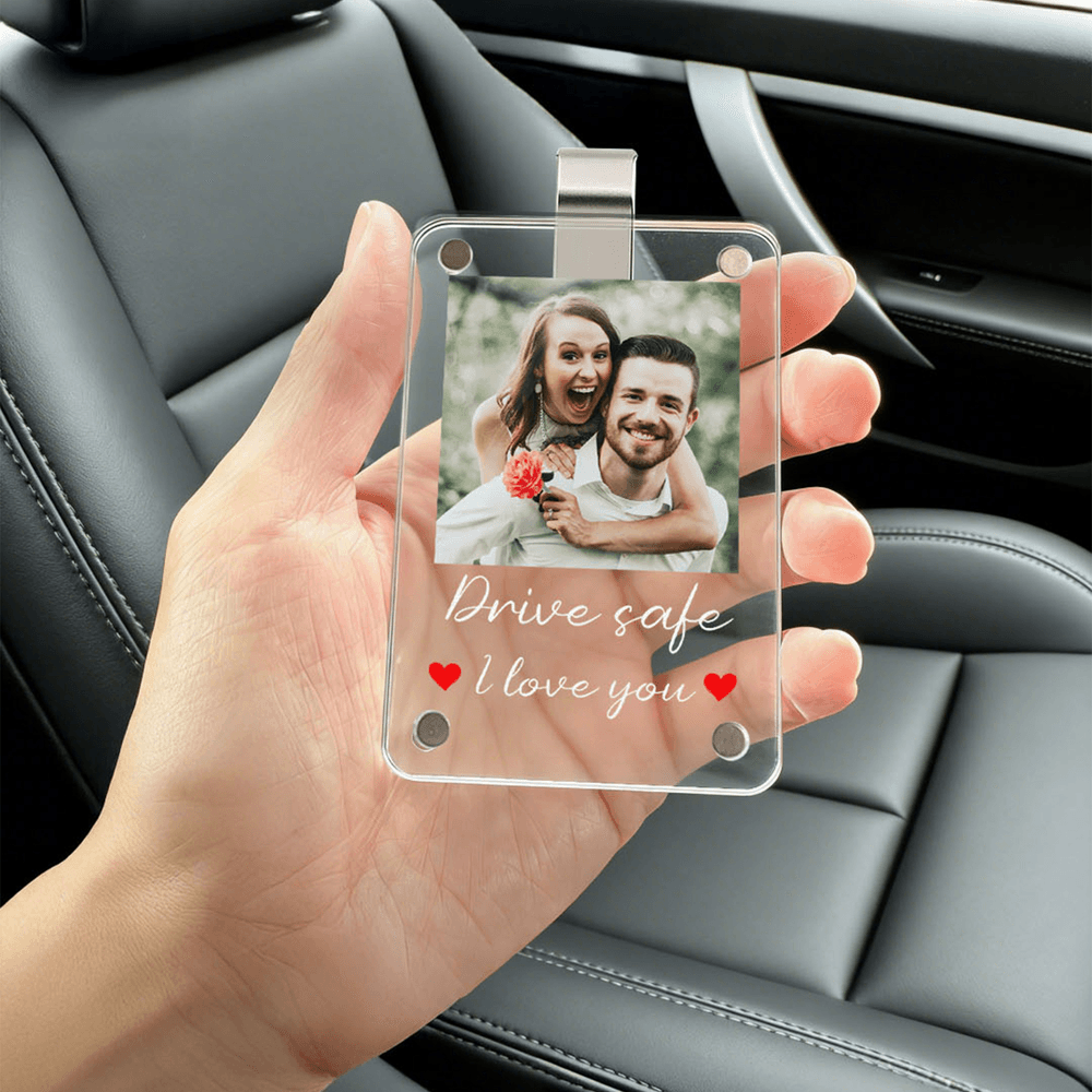 Clip per visiera dell'auto personalizzata con foto quadrata e testo Accessorio per auto Regalo di San Valentino per l'anniversario della coppia