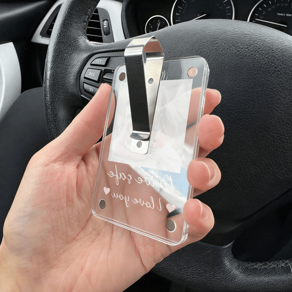 Progettato principalmente per essere applicato all'aletta parasole dell'auto, consentendo di vedere il volto della persona amata in qualsiasi momento durante la guida, può anche essere agganciato alla testiera del letto o al bordo della scrivania di casa, oppure alle pareti divisorie o alle cartelle dell'ufficio, fungendo da calda decorazione per mostrare dolci momenti. Lasciate che l'amore si estenda dall'auto a ogni angolo della vostra vita e del vostro lavoro.
