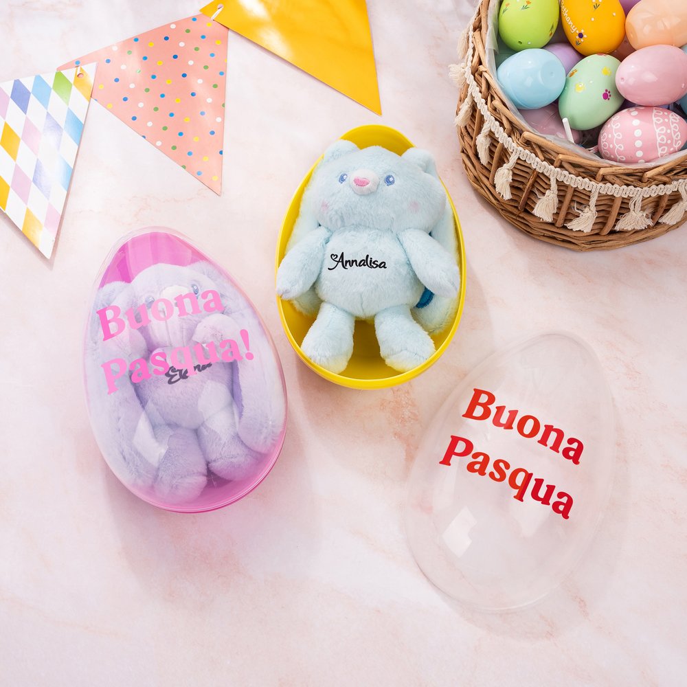 | Caratteristica: | Coniglietto estensibile, uovo di Pasqua capiente, testo personalizzabile |