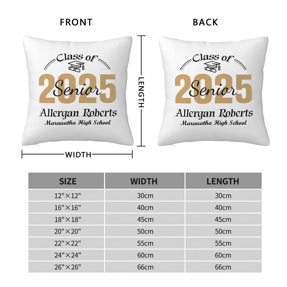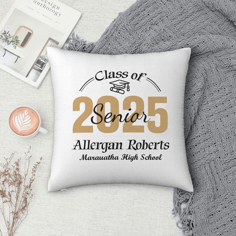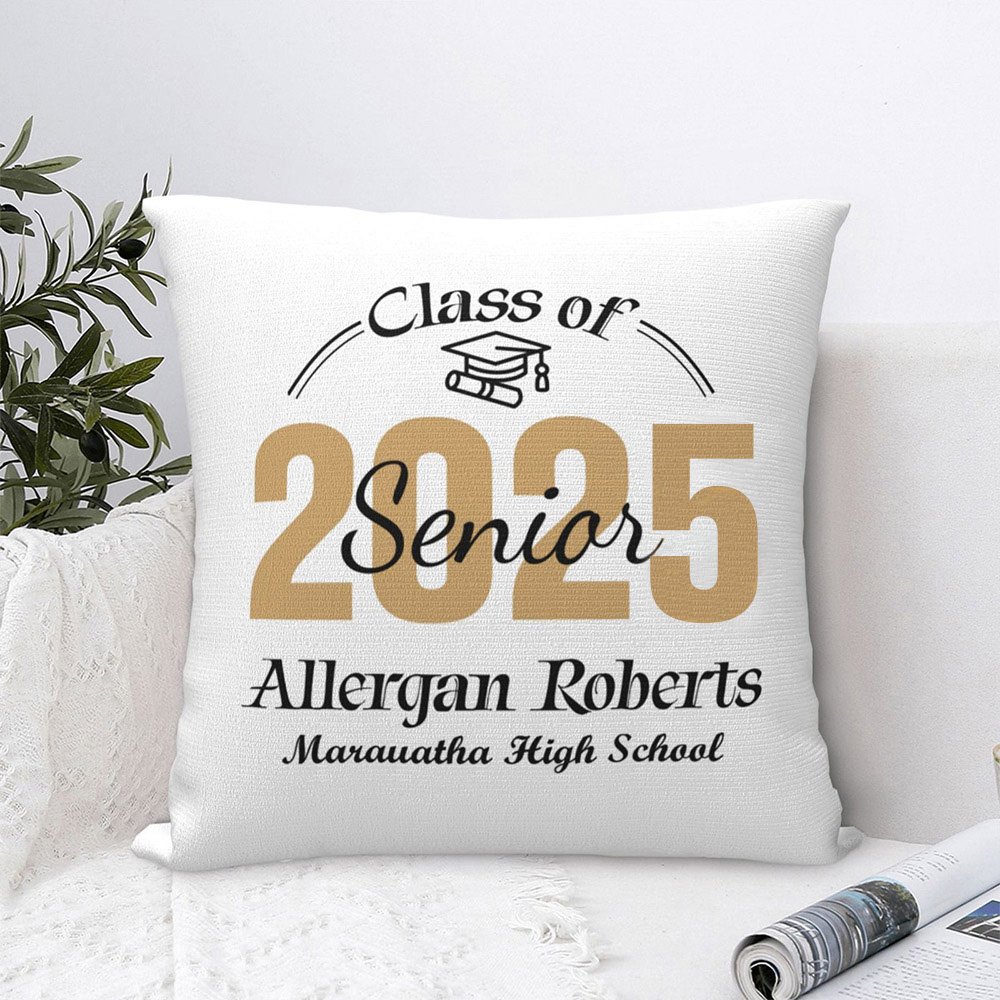 Cercate un regalo per i diplomati dell'ultimo anno di scuola superiore? Questo cuscino personalizzato è perfetto. Le sue caratteristiche personalizzate e uniche sorprenderanno senza dubbio il destinatario. Usate il nostro cuscino per dare loro un posto caldo dove riposare durante il loro viaggio verso il futuro!