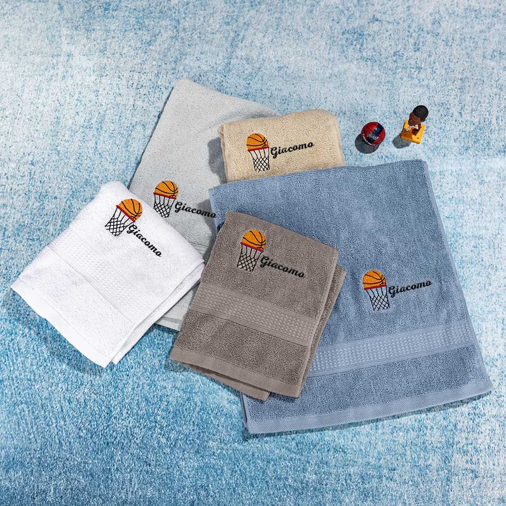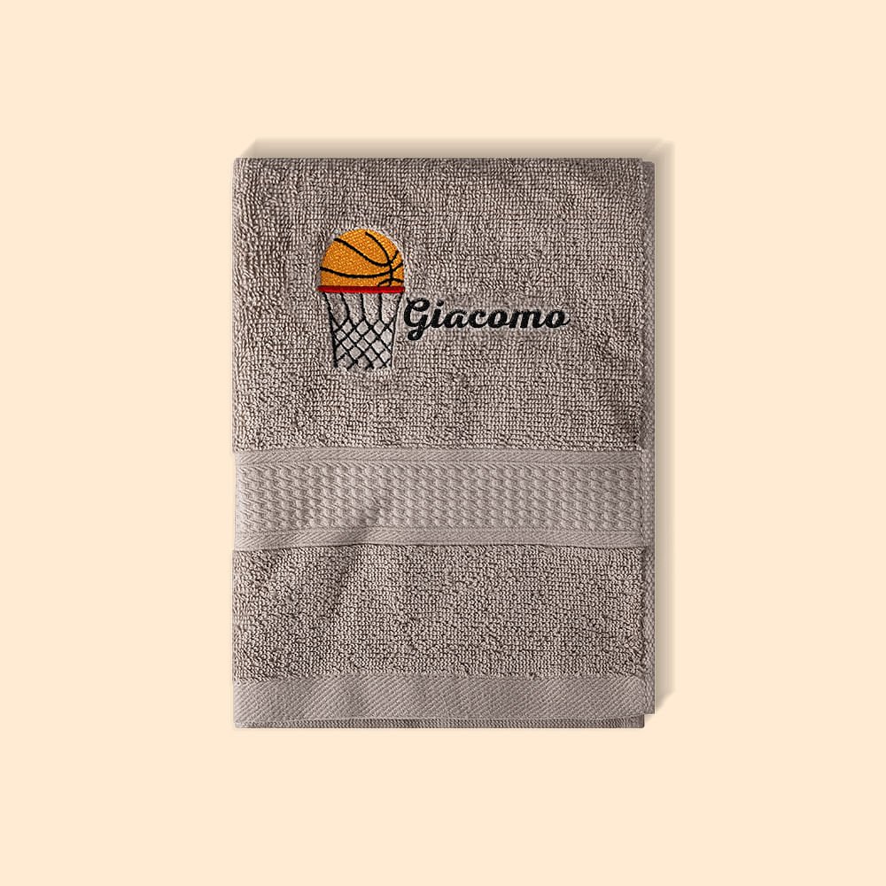 Questo asciugamano presenta un design originale, caratterizzato da colori a tinta unita come tonalità principale e un motivo di pallacanestro ricamato nell'angolo in basso a destra, che trasmette tutta la vitalità dello sport. È possibile personalizzarlo aggiungendo il proprio nome, rendendolo un accessorio sportivo unico e inconfondibile.