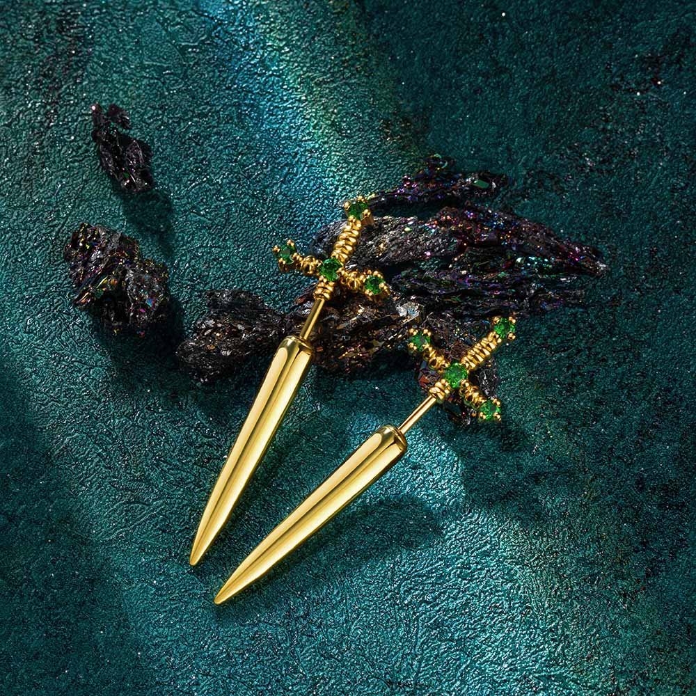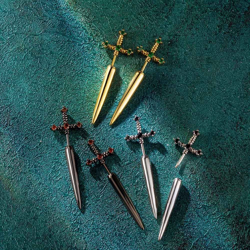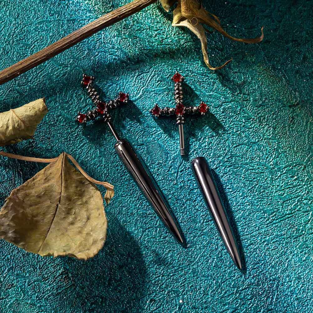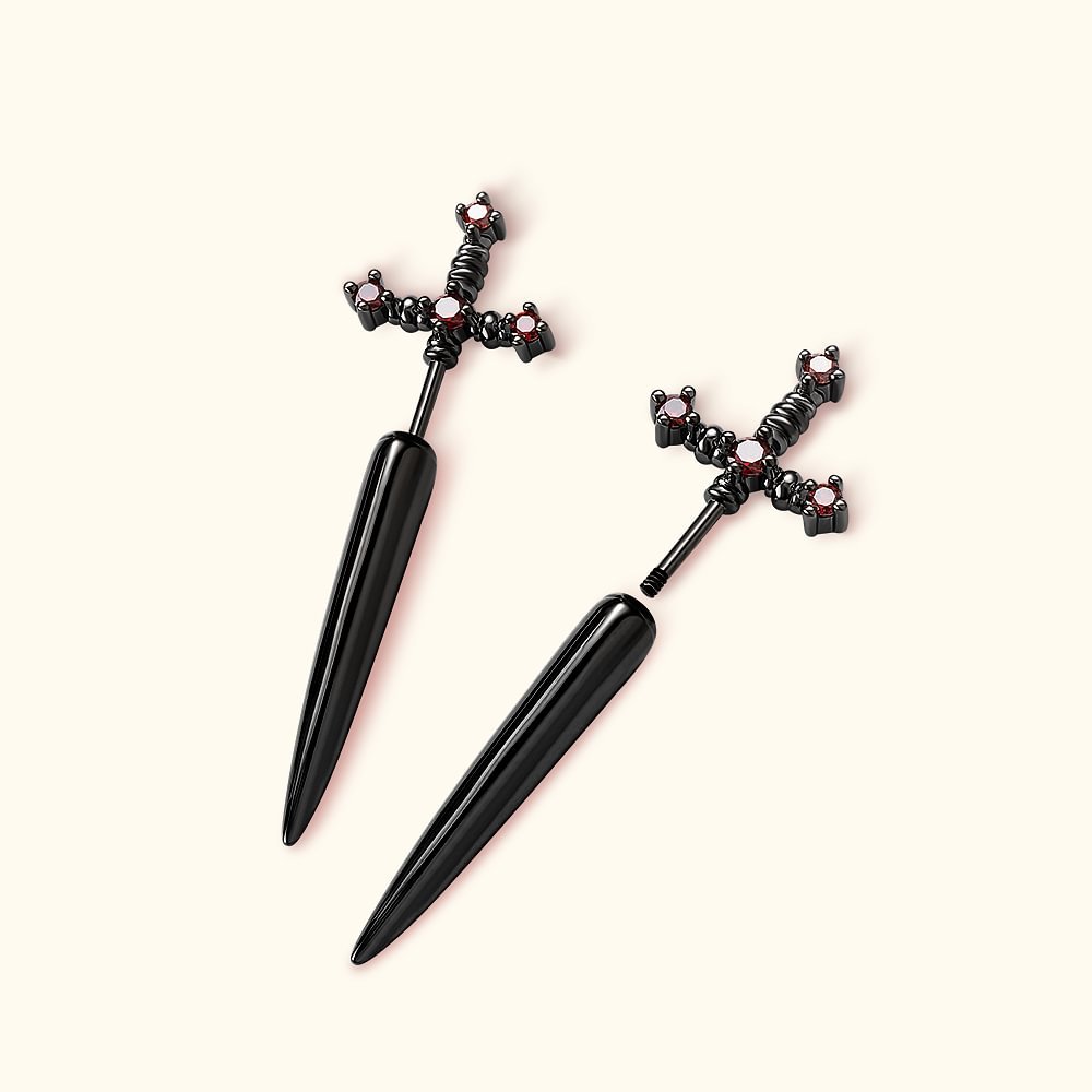 Questi orecchini presentano un design unico ispirato alle armi medievali, con manici intricati e lame d'acciaio scintillanti. Sono un'aggiunta perfetta a qualsiasi collezione di gioielli gotici o punk.