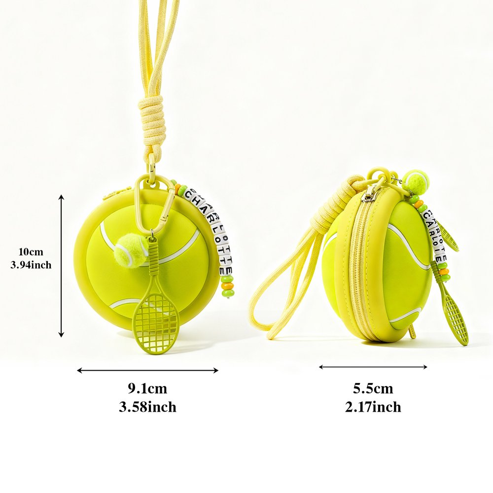 Progettata pensando al tennis, la piccola borsa presenta una sagoma realistica di pallina da tennis e adorabili ciondoli a forma di pallina e racchetta, che catturano perfettamente la passione degli appassionati di tennis. Può anche essere personalizzata con un nome, diventando così un accessorio sportivo unico.