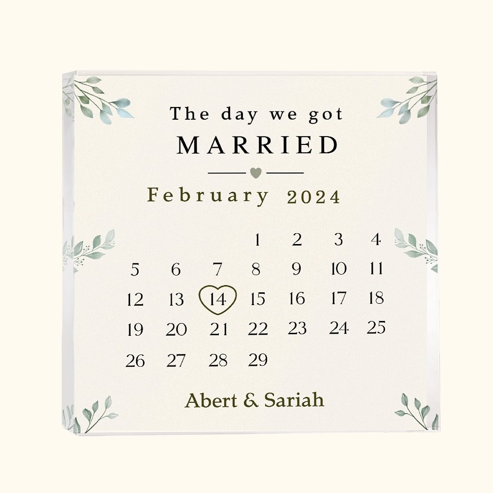 Realizzate meticolosamente con precisione e attenzione costante ai dettagli, le nostre targhe calendario in acrilico vantano materiali di alta qualità che garantiscono durata e longevità. La chiarezza cristallina dell'acrilico non solo assicura la resistenza della targa, ma esalta anche l'eleganza complessiva del design, creando un'opera d'arte mozzafiato che cattura in modo impeccabile l'essenza stessa dell'amore.