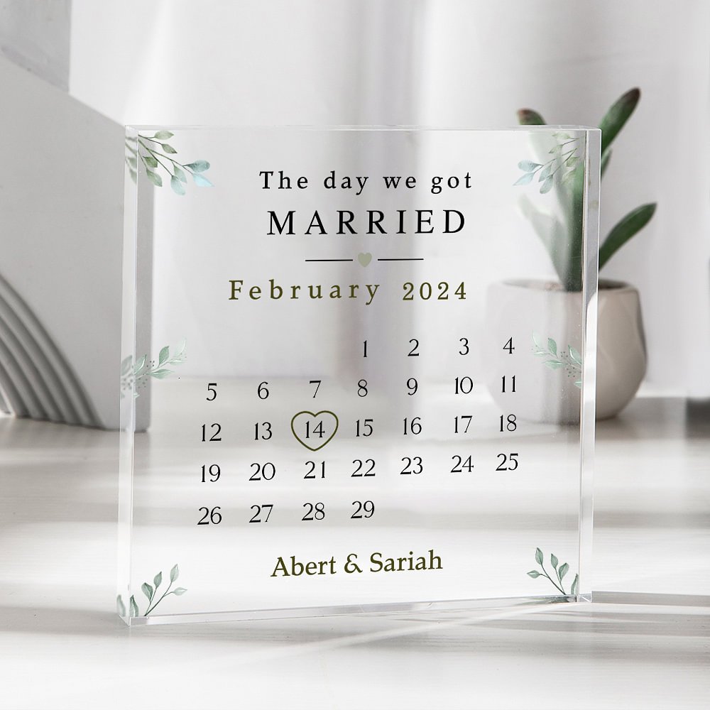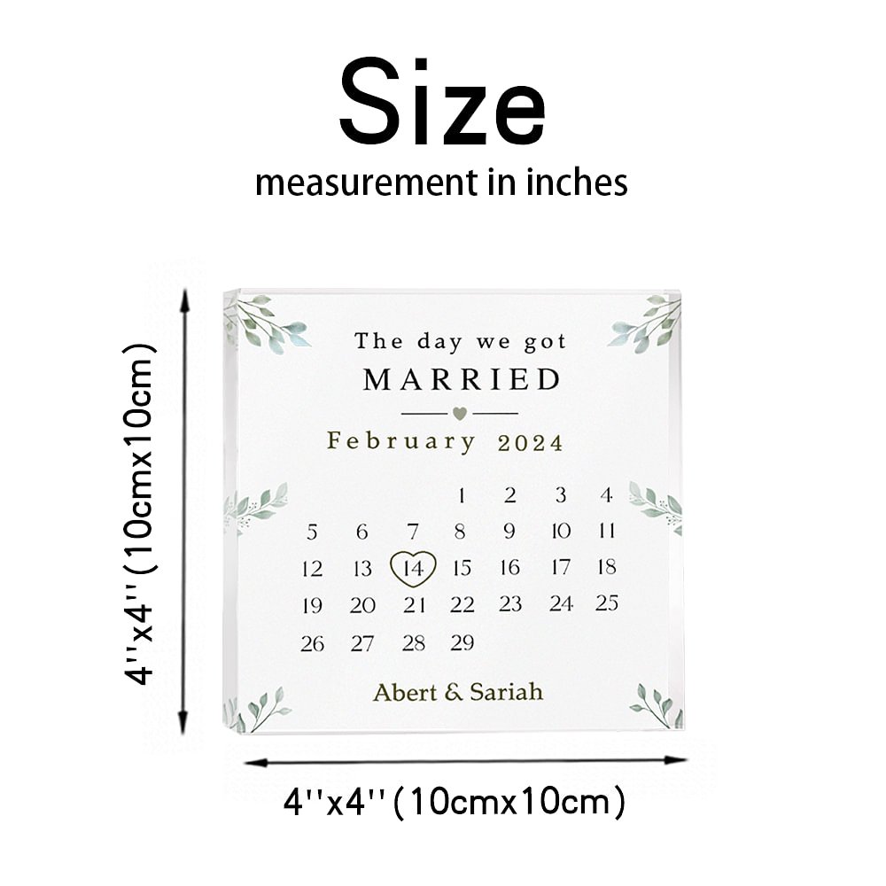 Realizzate meticolosamente con precisione e attenzione costante ai dettagli, le nostre targhe calendario in acrilico vantano materiali di alta qualità che garantiscono durata e longevità. La chiarezza cristallina dell'acrilico non solo assicura la resistenza della targa, ma esalta anche l'eleganza complessiva del design, creando un'opera d'arte mozzafiato che cattura in modo impeccabile l'essenza stessa dell'amore.