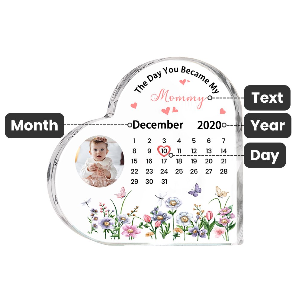 Celebrate il legame speciale che condividete con vostra madre con la nostra raffinata targa a cuore in acrilico. La targa è incisa con il testo "Il giorno in cui sei diventata la mia XX" e può essere personalizzata con date, calendari, anni e persino una foto cara, rendendo la targa un ricordo davvero personalizzato che cattura i ricordi e le emozioni speciali tra voi e vostra madre.