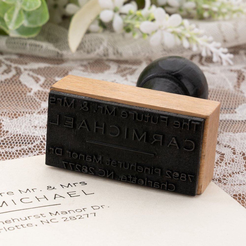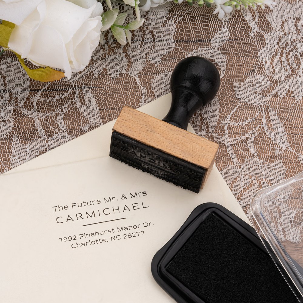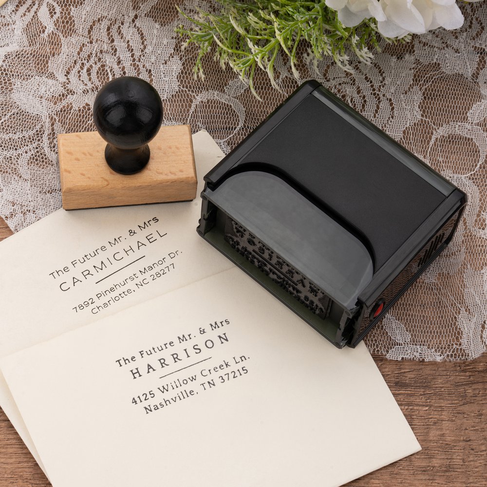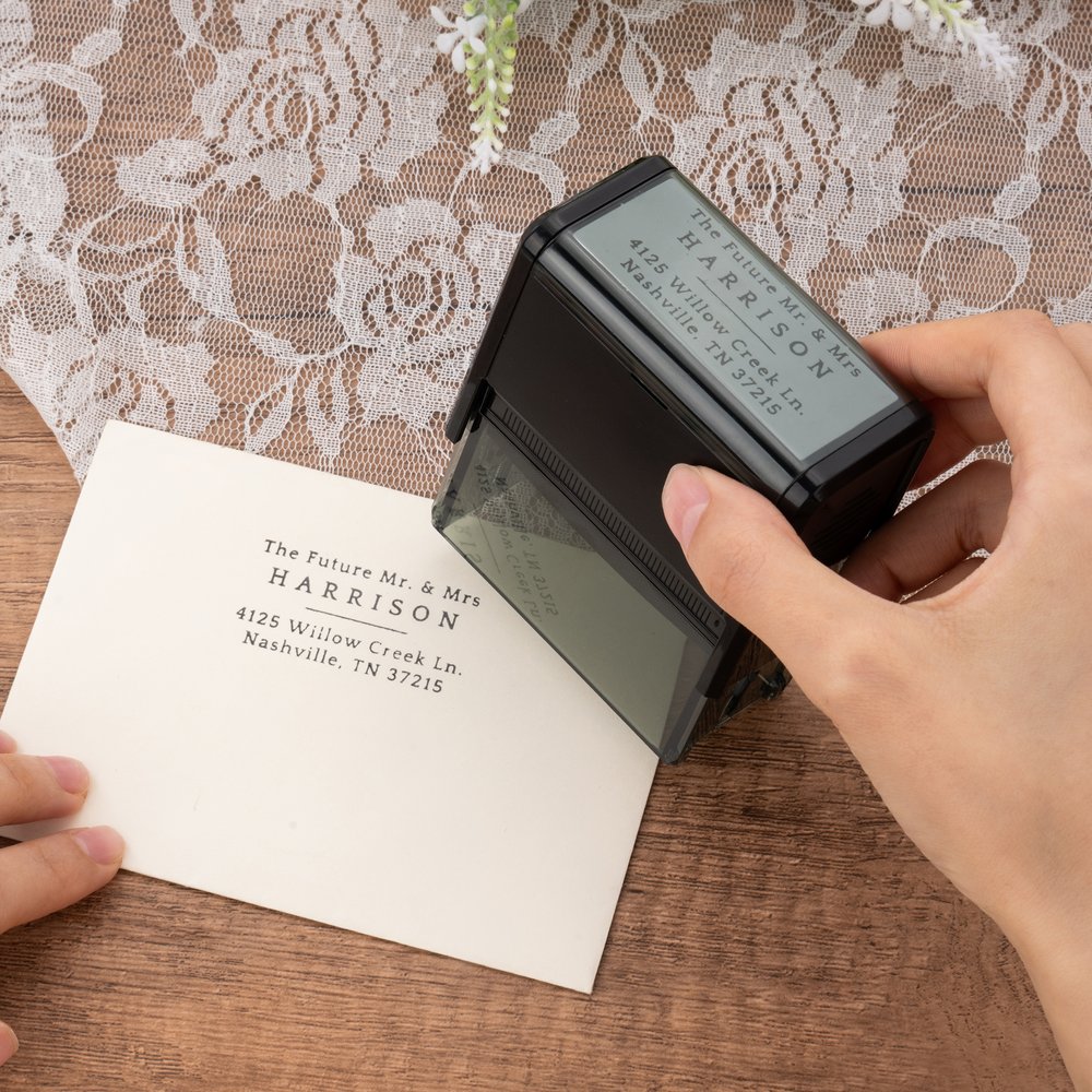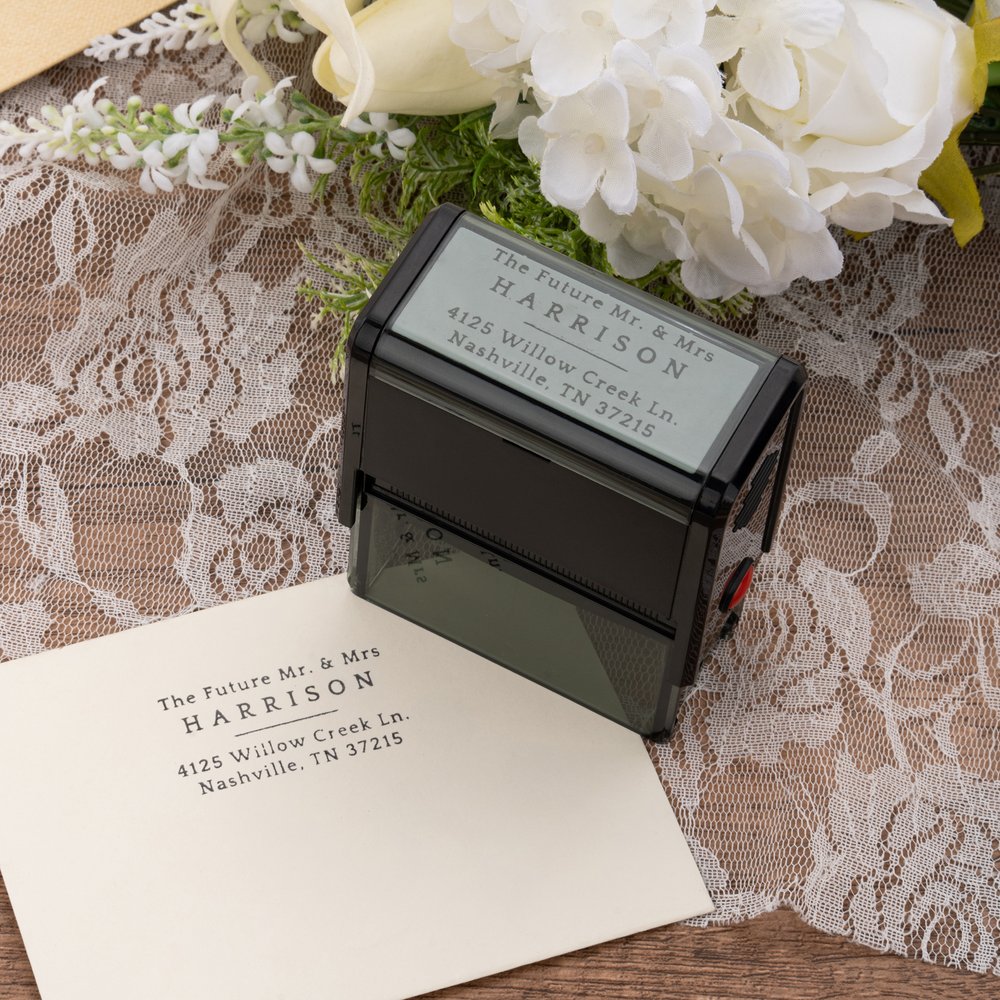 Segno personalizzato dell'indirizzo del futuro signore e signora Timbro autoinchiostrante portatile con inchiostro e nome Regalo di fidanzamento di nozze per coppie di sposi.