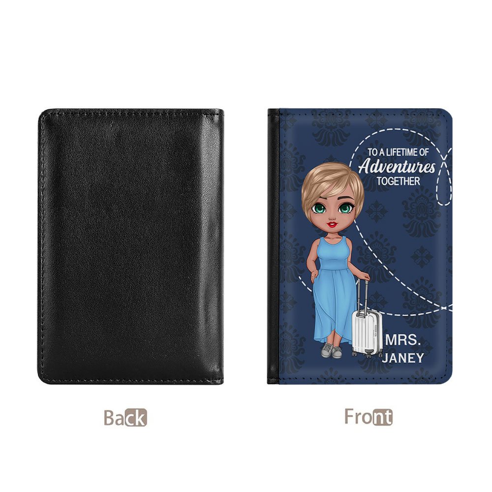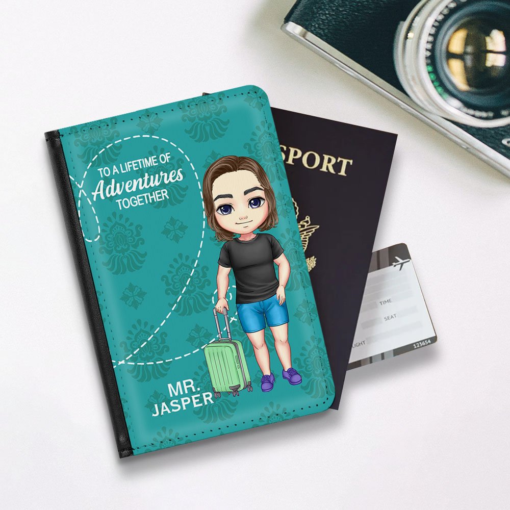 La nostra copertina per passaporto personalizzata è un regalo delizioso per le coppie che amano esplorare il mondo insieme. La copertina presenta un affascinante disegno a tema avventura che include la frase "Per una vita di avventure insieme". Questo tocco personalizzato aggiunge un tocco romantico e avventuroso alle loro esperienze di viaggio.