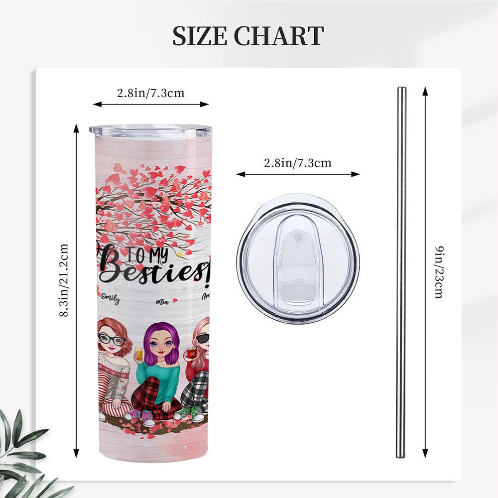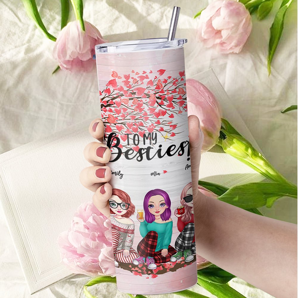 Personalizzato To My Besties I Love You Love Tree Straight Skinny Tumbler Regalo per gli amici