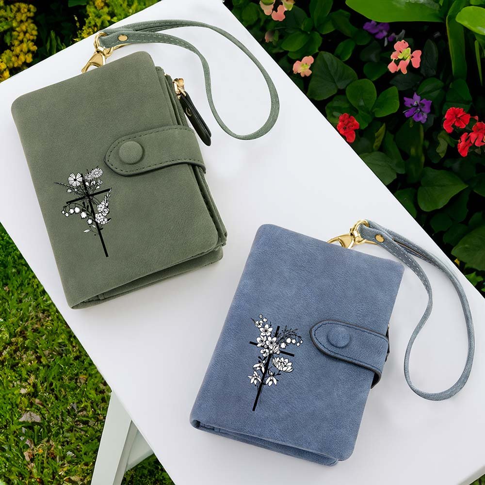 Si tratta di un portafoglio semplice ma unico che può essere personalizzato con il fiore di nascita del destinatario, aggiungendo un tocco unico e personalizzato, rendendolo un regalo significativo e prezioso.