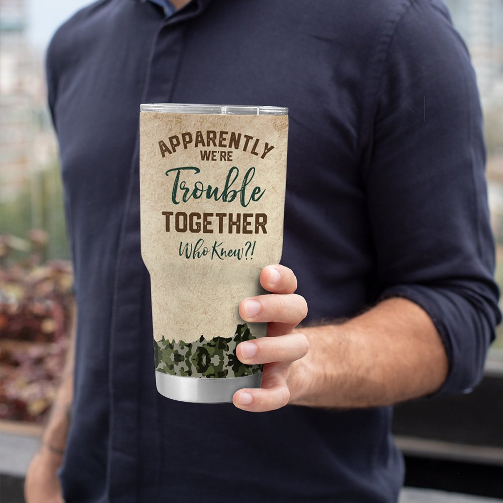 Questo bicchiere da 30 oz è il regalo perfetto per ogni occasione. Che sia per una coppia, un anniversario, un compleanno o un regalo per il vostro migliore amico, questo tumbler farà sicuramente colpo. È anche un regalo ideale per gli appassionati di campeggio. Grazie alla sua struttura in acciaio inossidabile di alta qualità, al design portatile e al coperchio a prova di perdite, è un must per tutti gli amanti delle bevande.