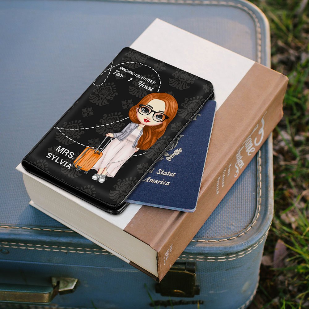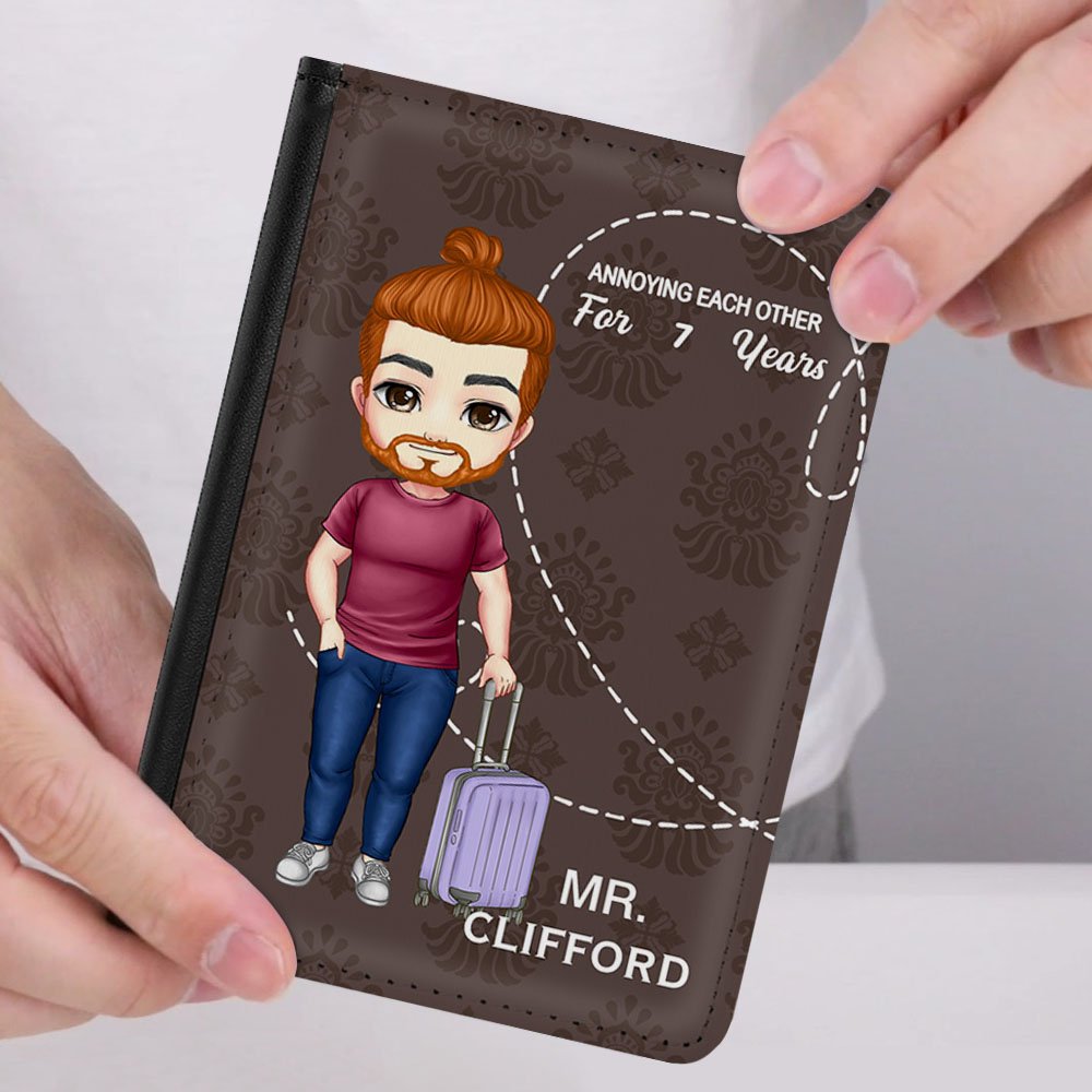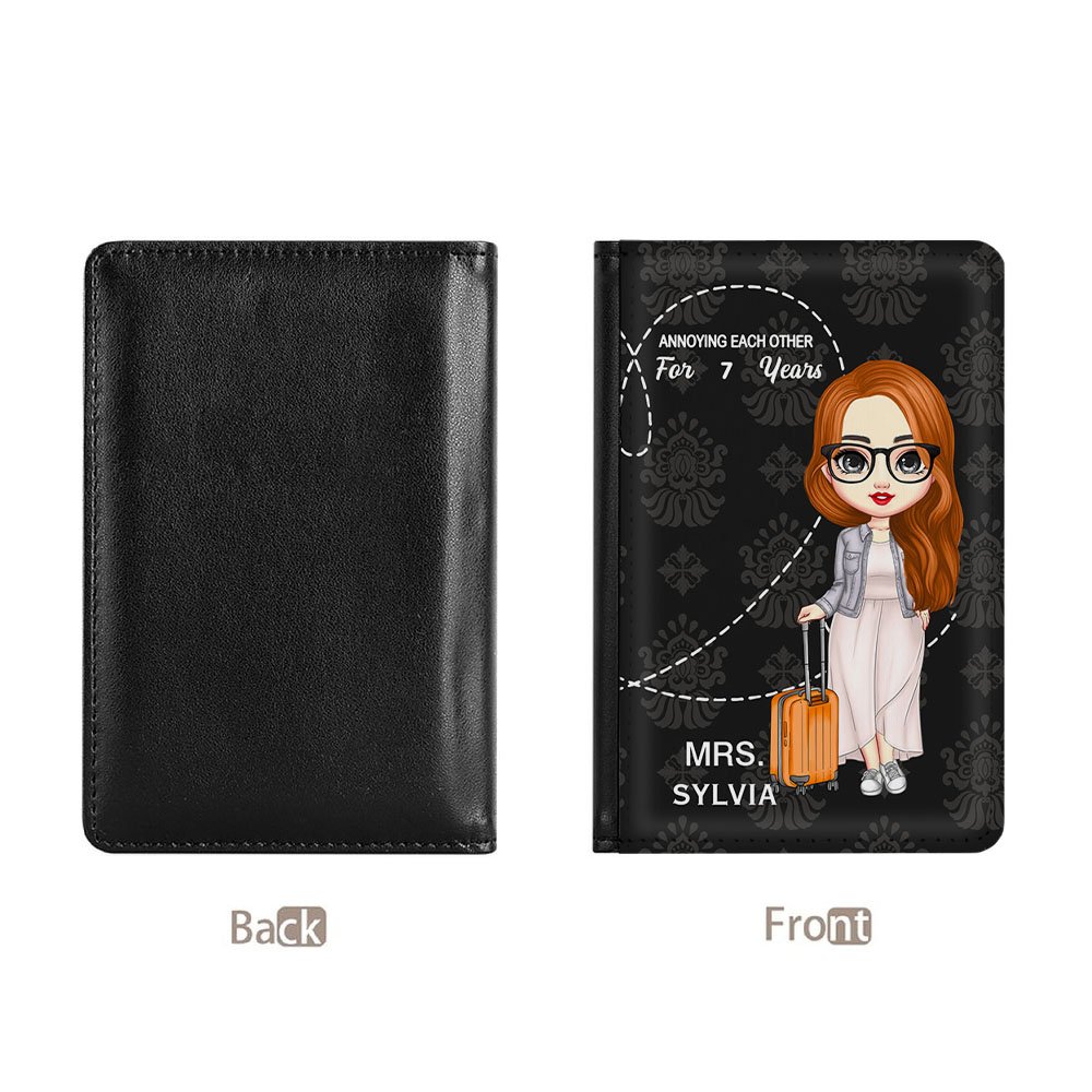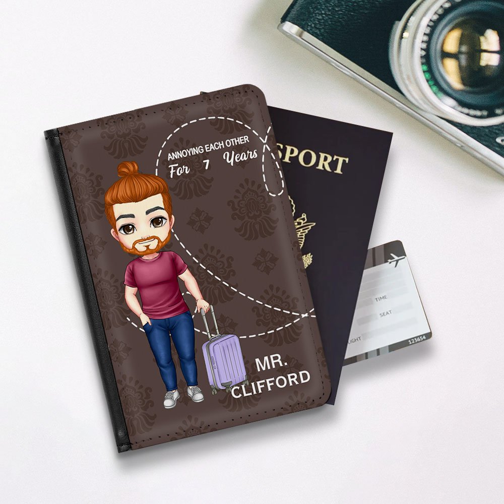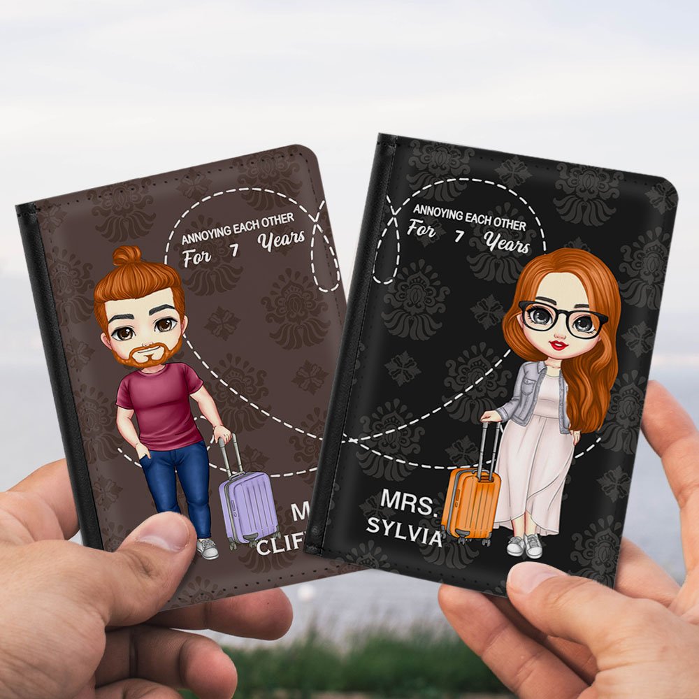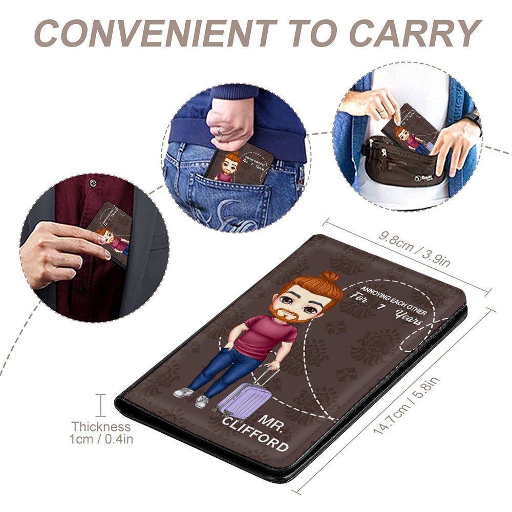 Our personalized passport cover is a delightful gift for couples who love to explore the world together. The cover features a charming adventure-themed design that includes the phrase "Annoying each other for ... years." This personalized touch adds a romantic and adventurous flair to their travel experiences.