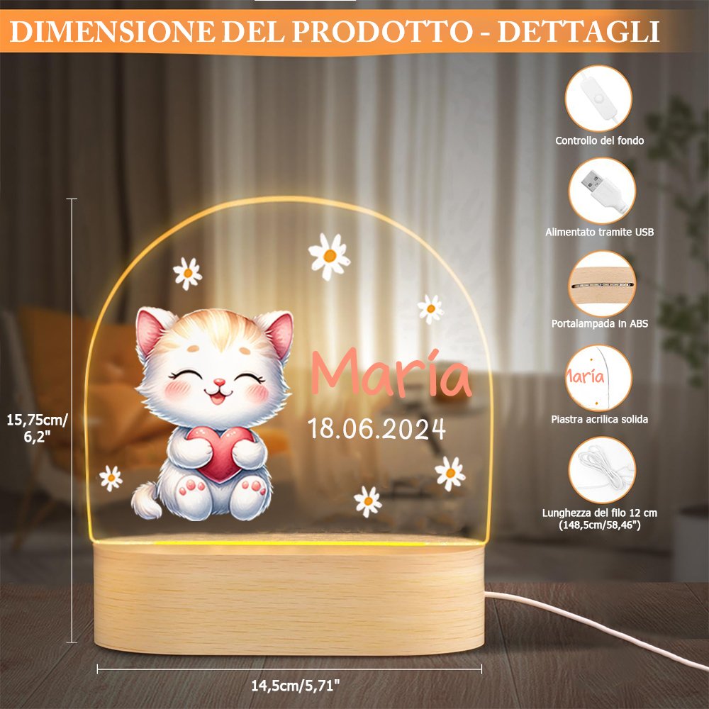 | Caratteristica: | Non sbiadisce, luce notturna a LED, personalizzazione del nome e data, disegno di animali |