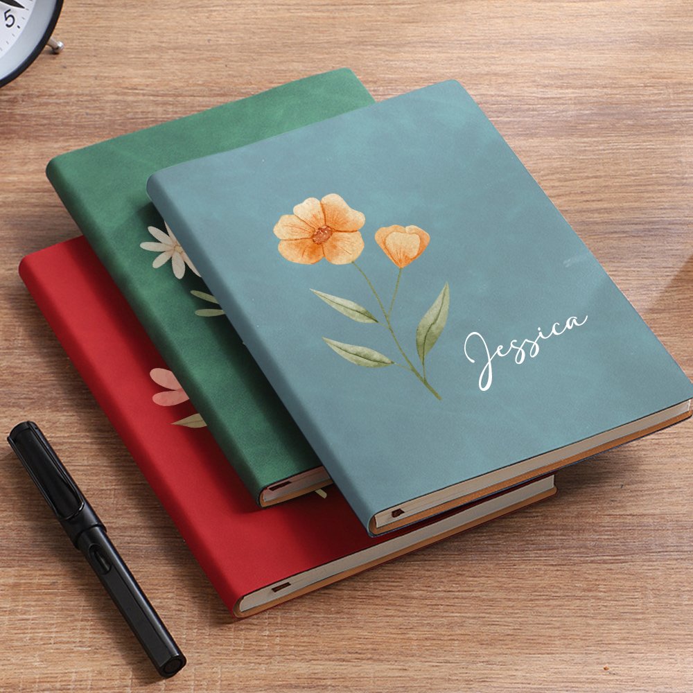 Questo diario in pelle può essere personalizzato con un disegno di fiori di nascita in base al mese di nascita del destinatario. La stampa del fiore di nascita ad acquerello aggiunge un tocco personale e un senso di bellezza della natura al diario. L'esclusiva copertina in pelle con nome personalizzato rende il diario visivamente accattivante, rendendo questo diario un ricordo speciale.